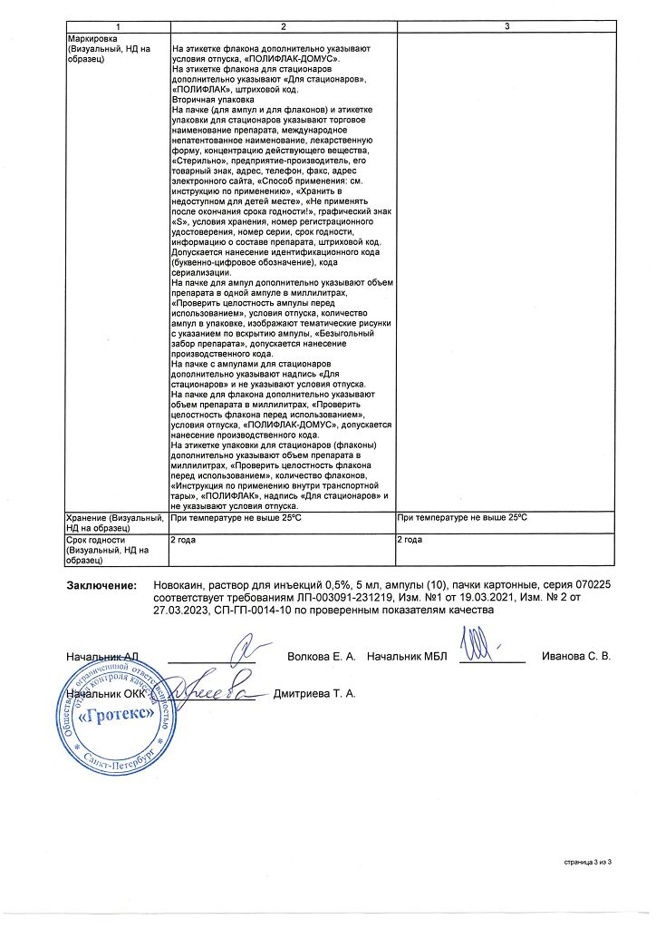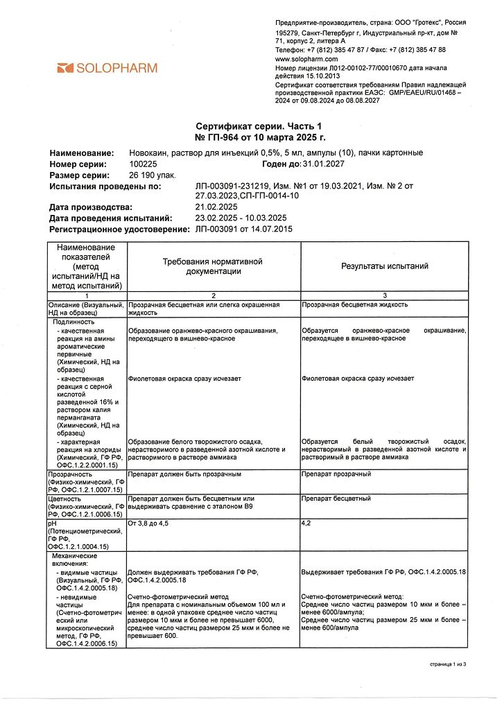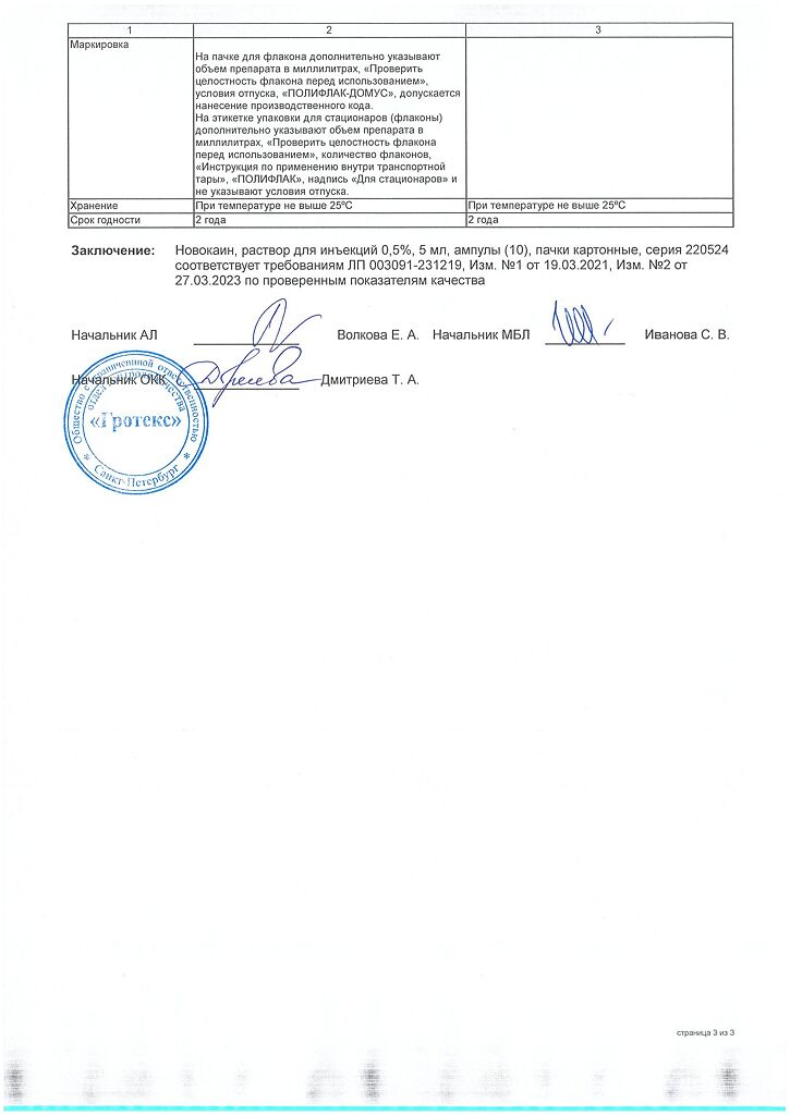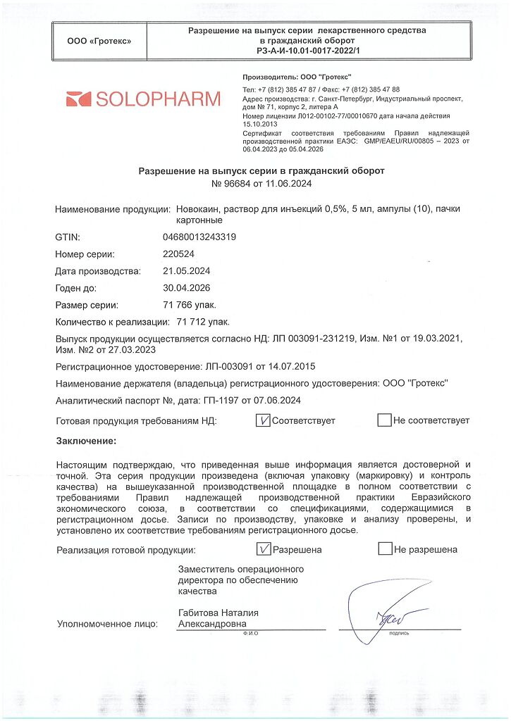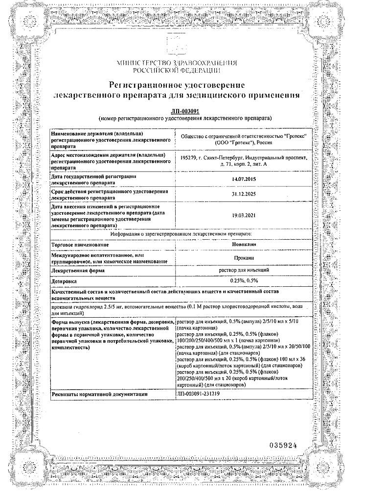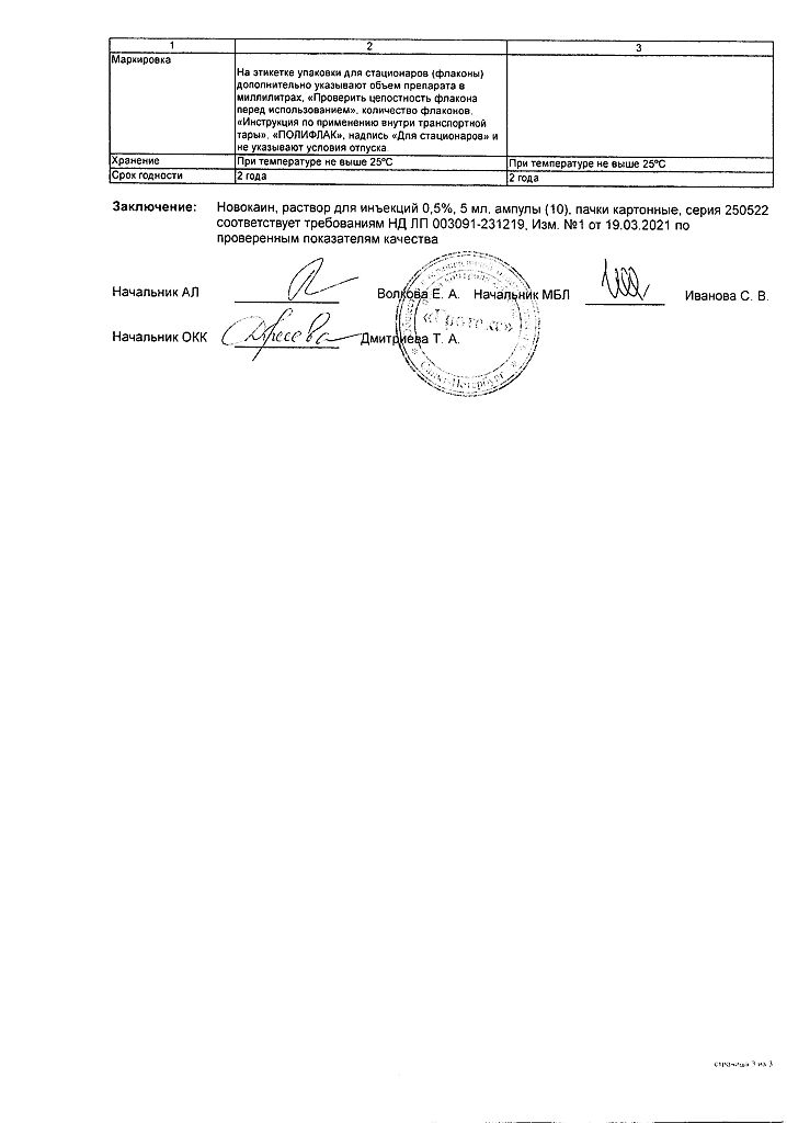 Документы Новокаин раствор для инъекций 0,5 % 5 мл 10 шт
