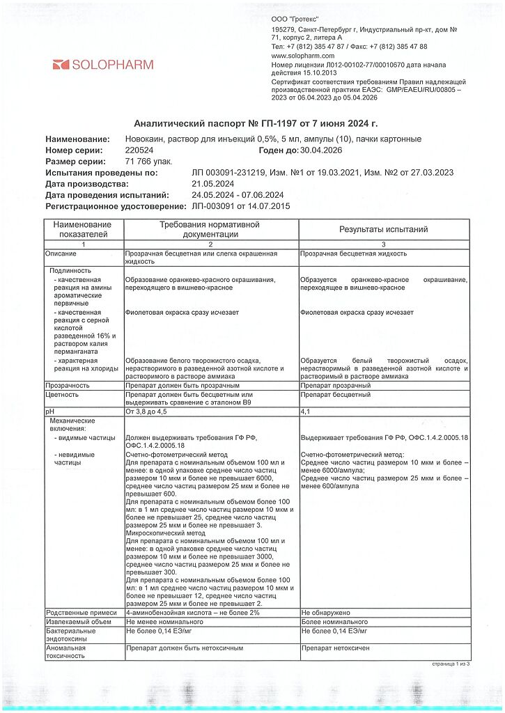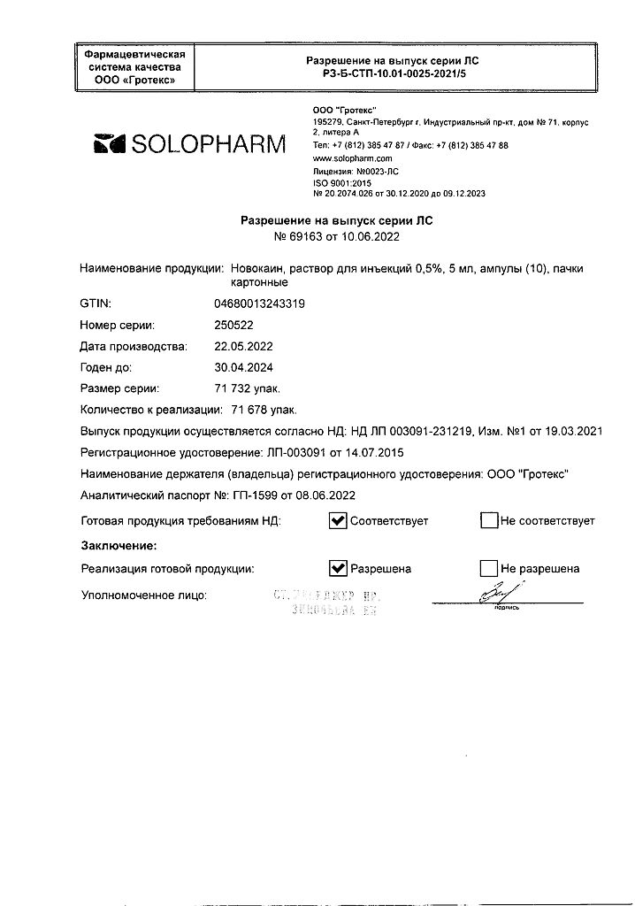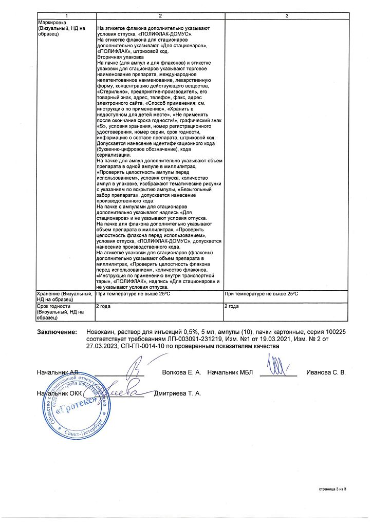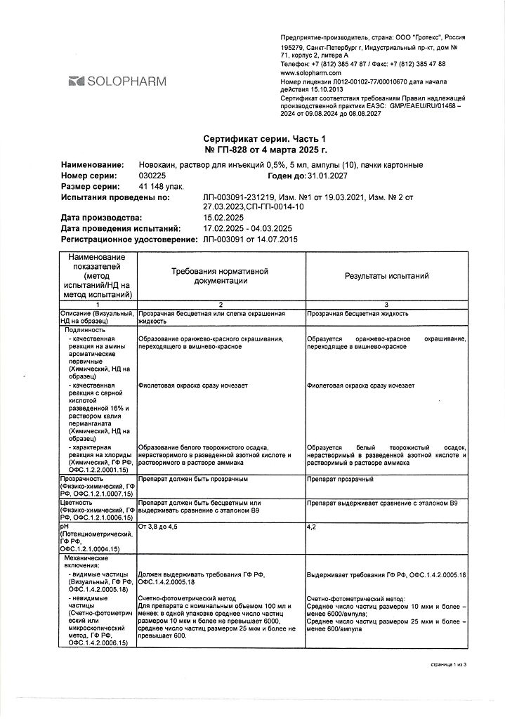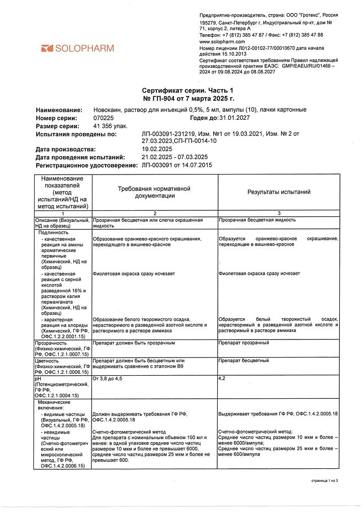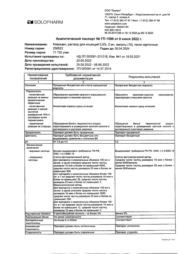 Документы Новокаин раствор для инъекций 0,5 % 5 мл 10 шт