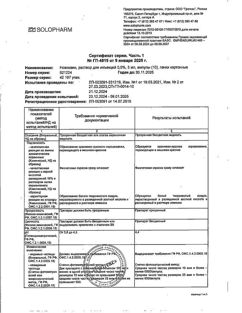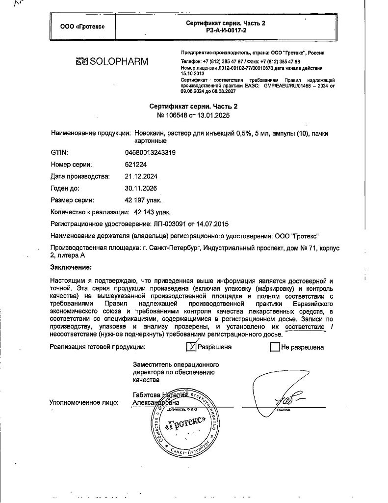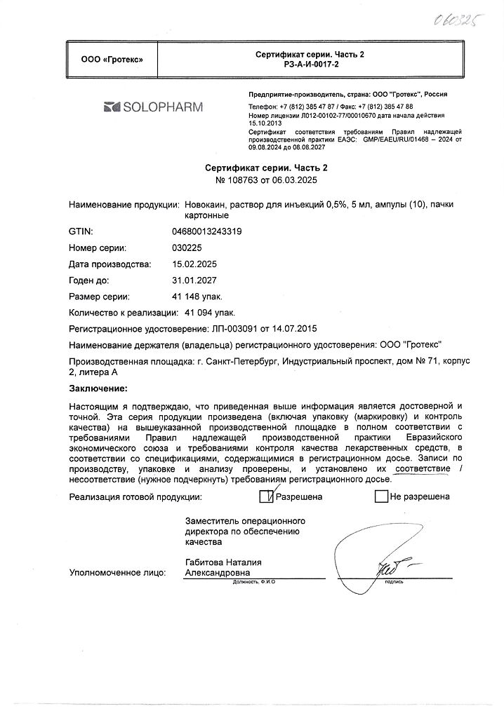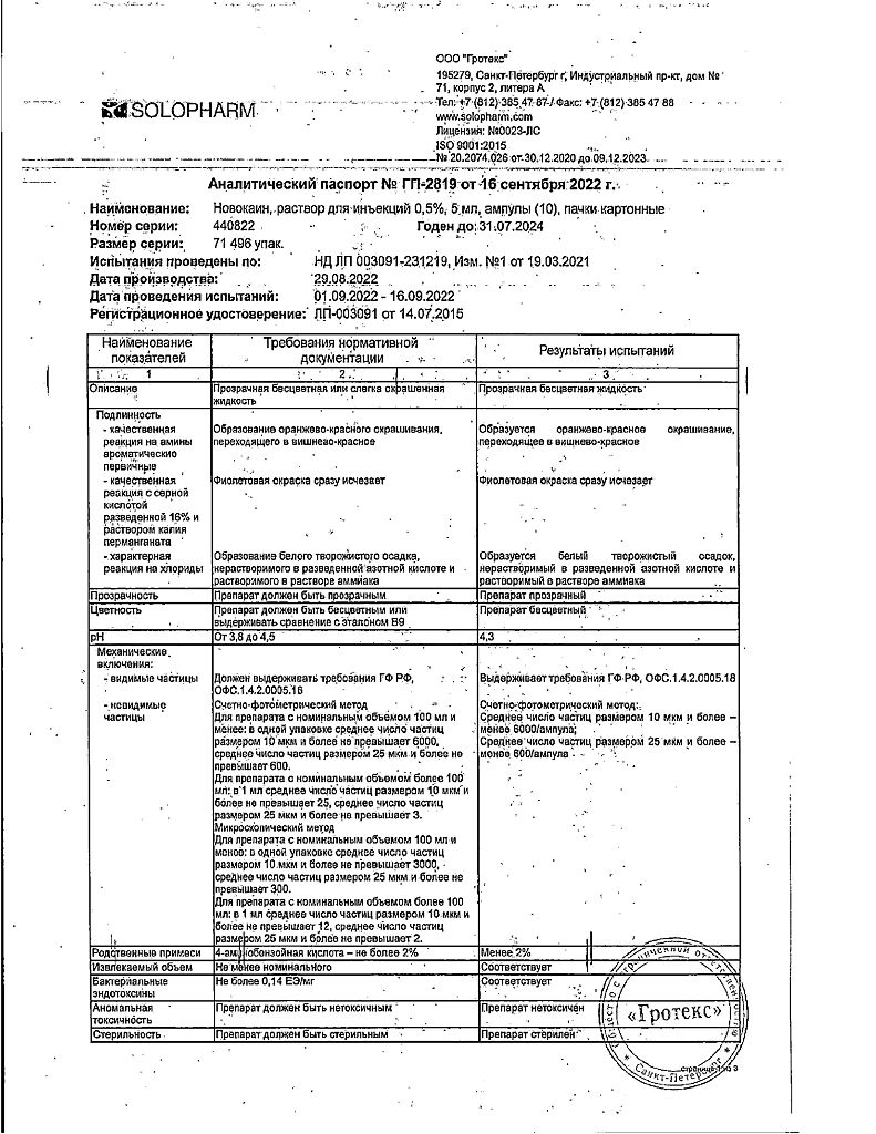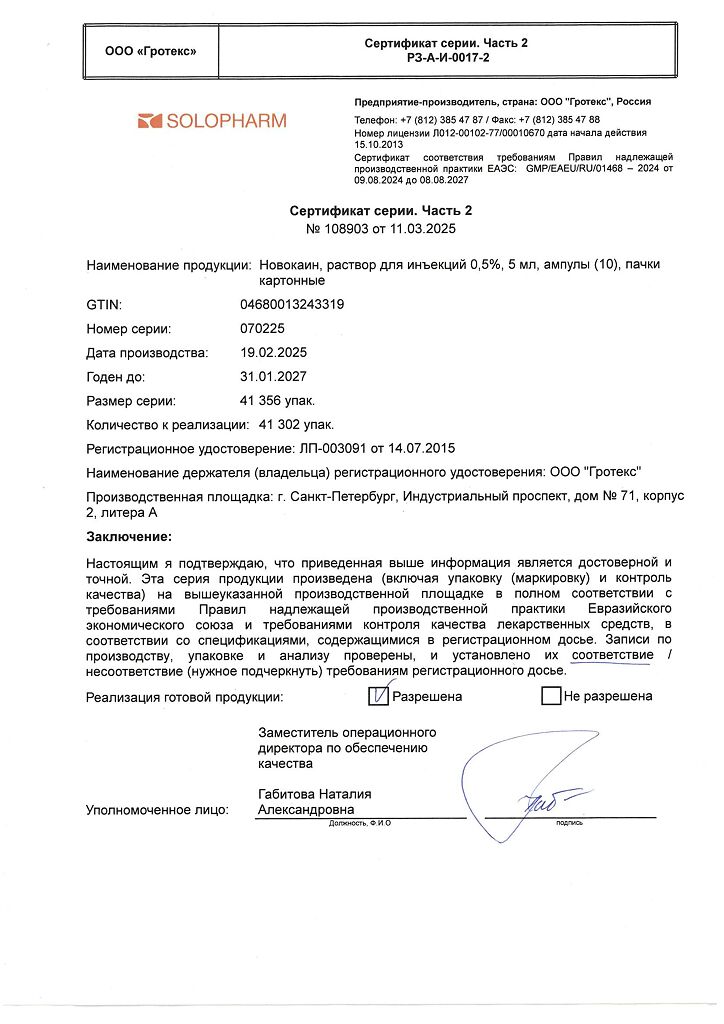 Документы Новокаин раствор для инъекций 0,5 % 5 мл 10 шт