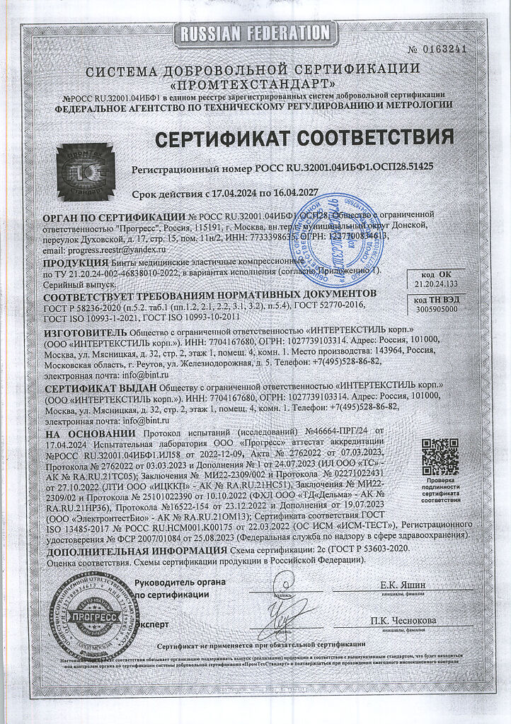 Производитель: ИНТЕРТЕКСТИЛЬ корп., Россия