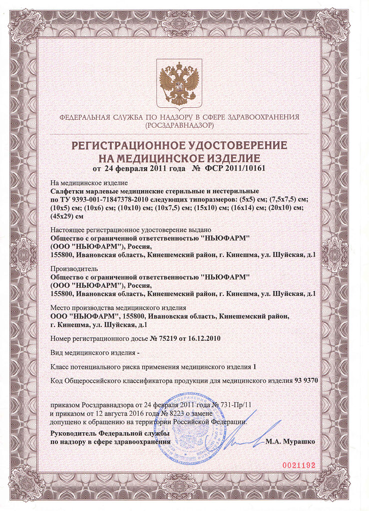 Документы Салфетки стерильные Вариант 7,5 х 7,5 см 8-слойные 10 шт