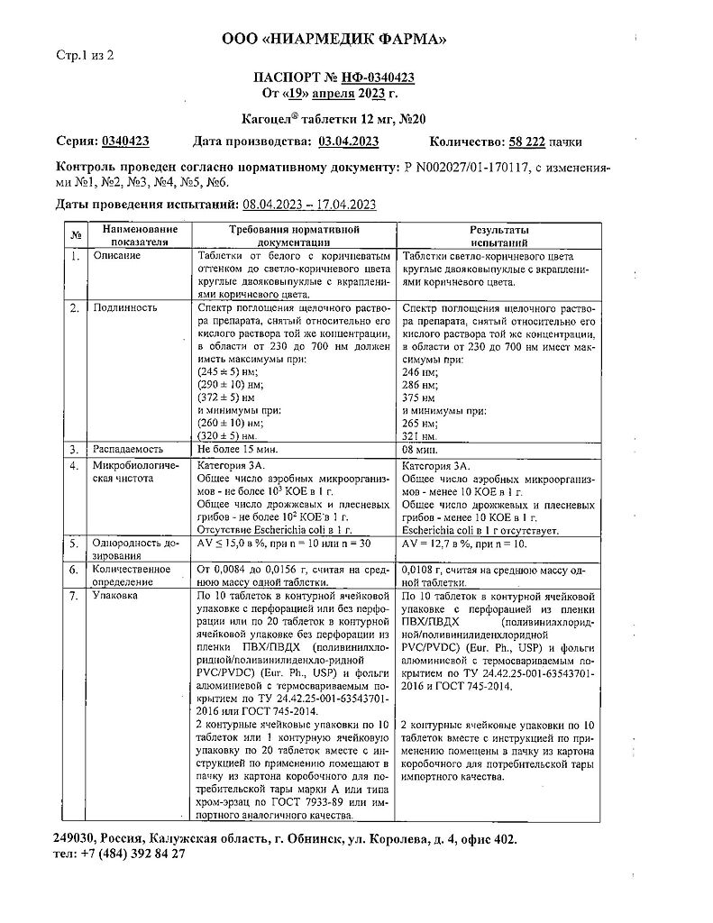 • 📒 Подробная инструкция по применению Кагоцел таблетки 12 мг 20 шт