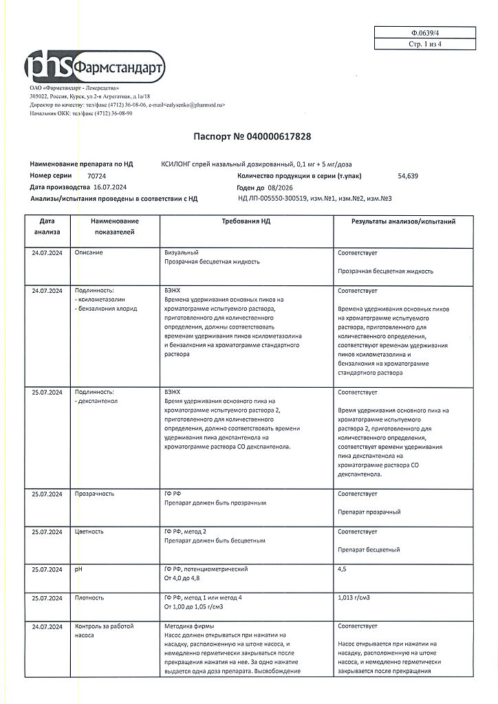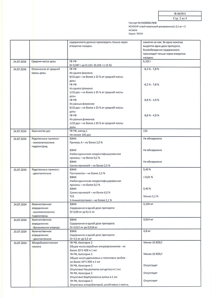 Действующее вещество: Ксилометазолин, [Декспантенол]
