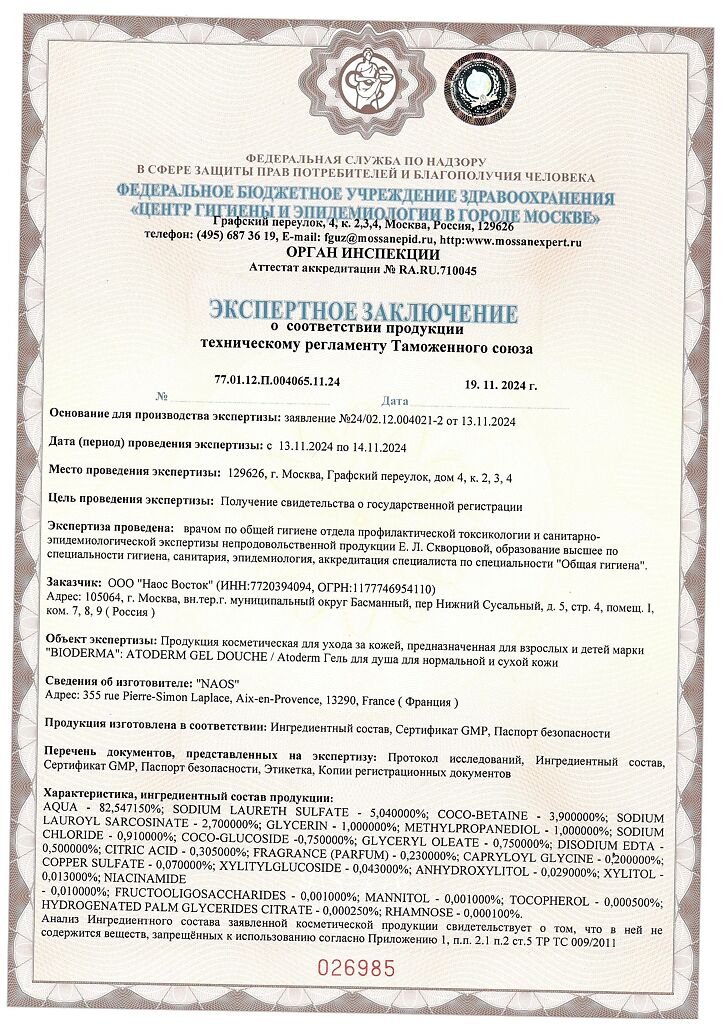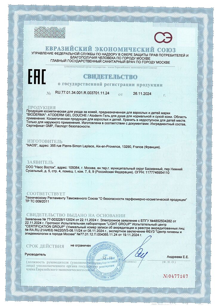 Документы Bioderma Atoderm Gentle Гель для душа нежный 1 л 1 шт