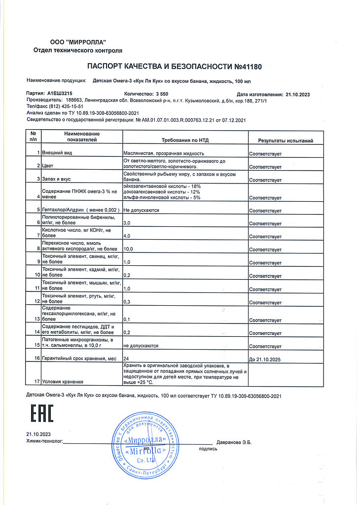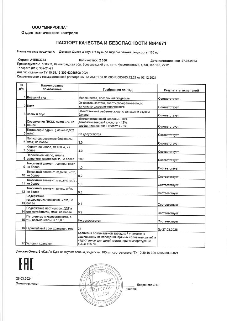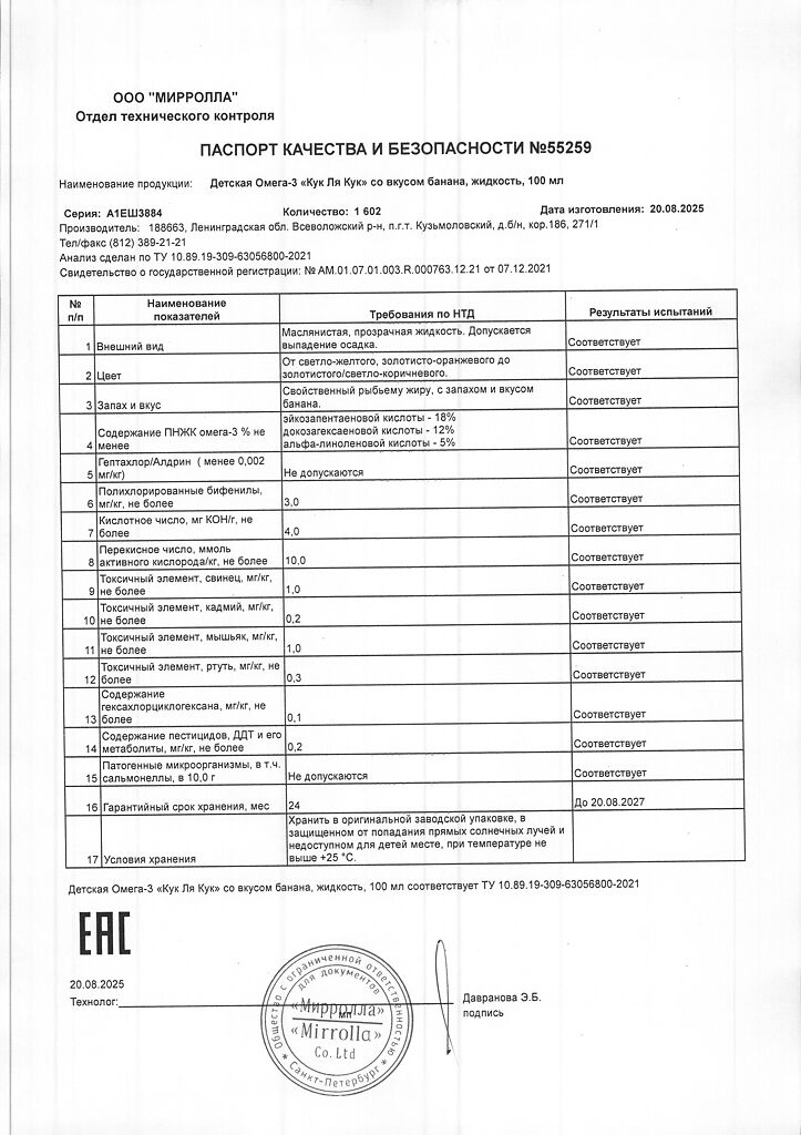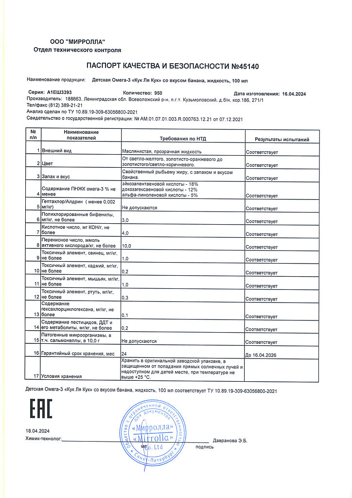Кук Ля Кук Детская Омега-3 со вкусом банана фл 100 мл: 6 отзывов покупателей и фармацевтов