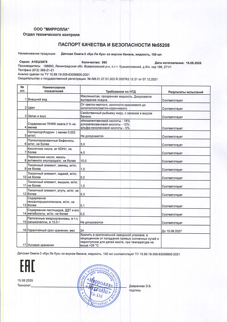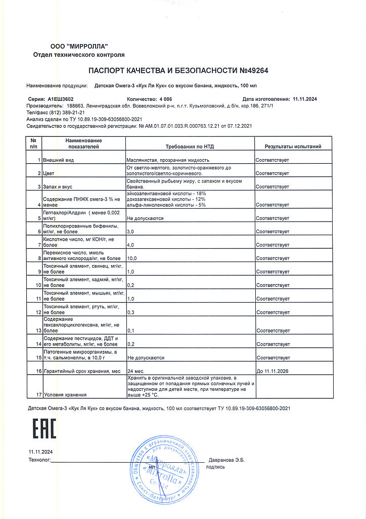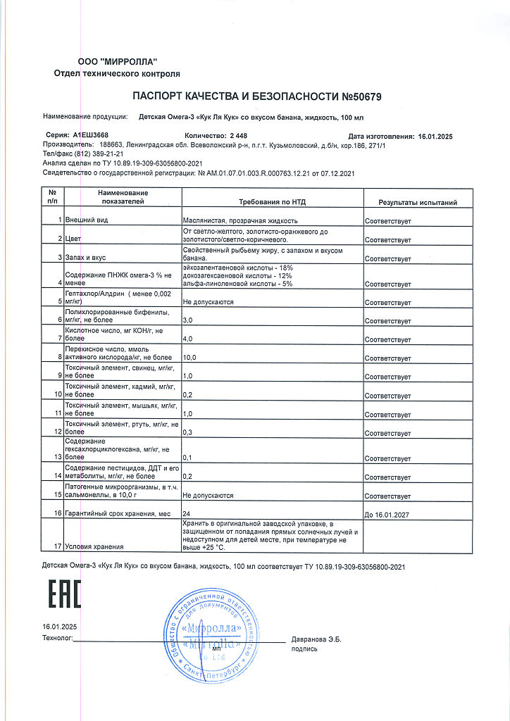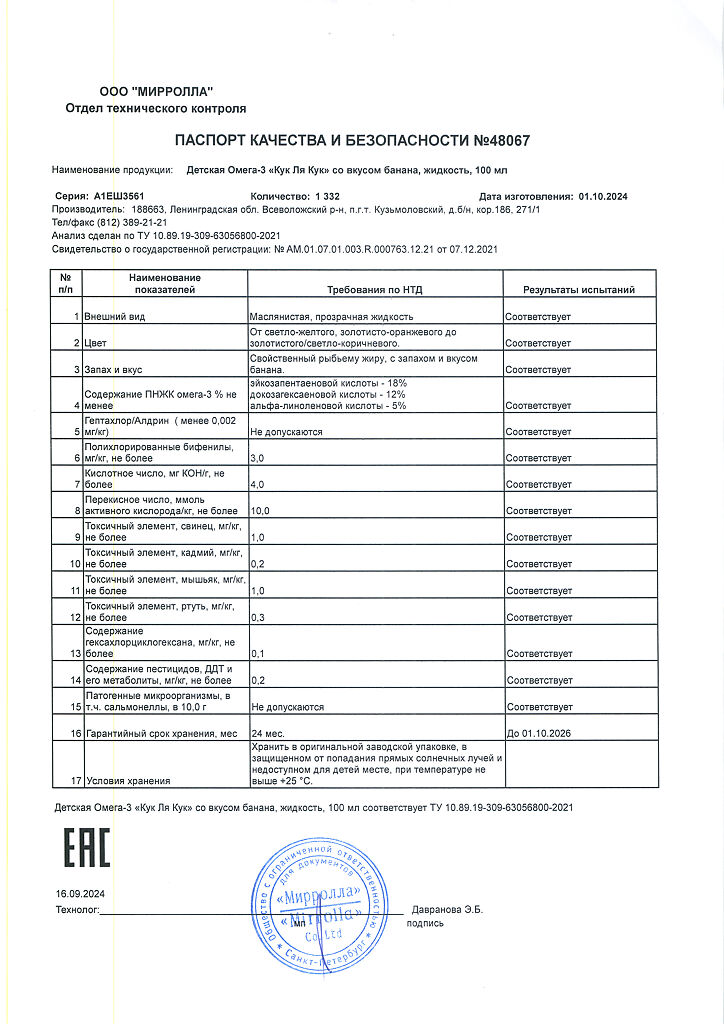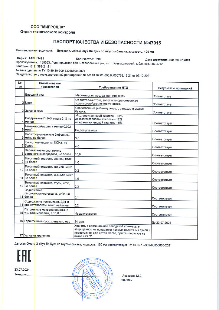 Кук Ля Кук Детская Омега-3 со вкусом банана фл 100 мл: 6 отзывов покупателей и фармацевтов