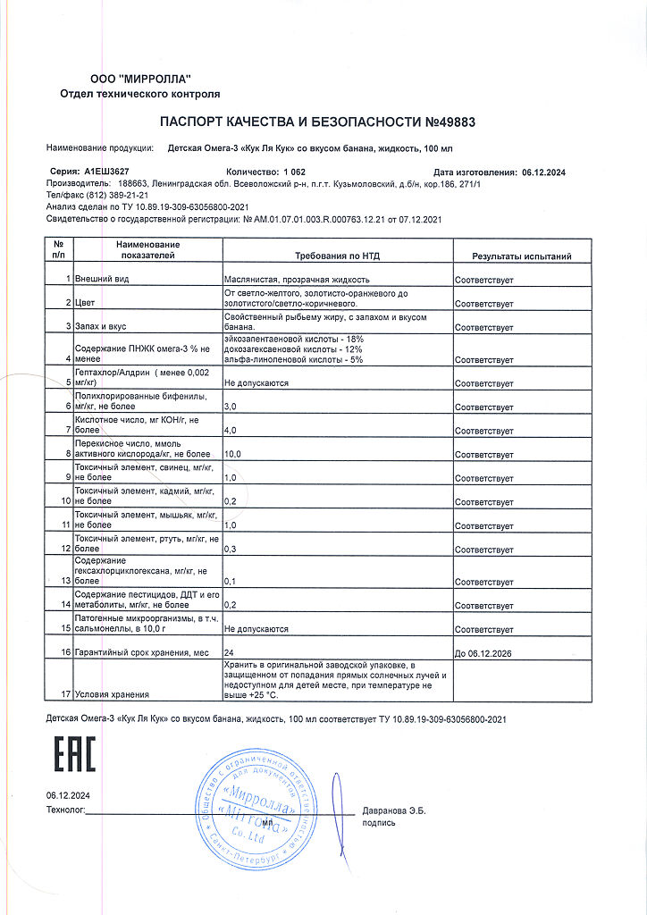Документы Кук Ля Кук Детская Омега-3 со вкусом банана фл 100 мл