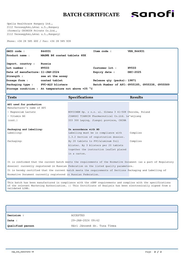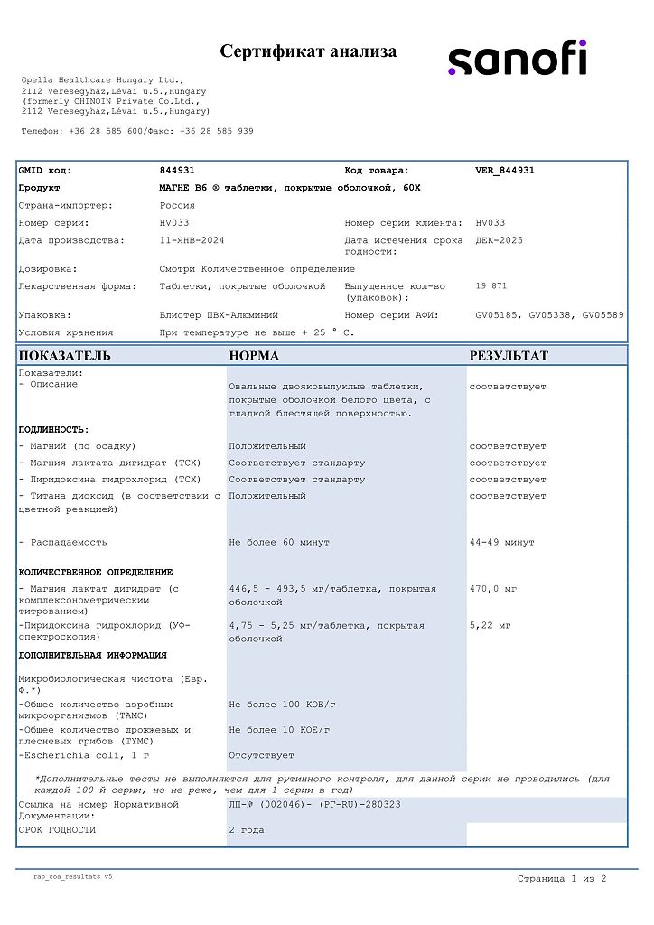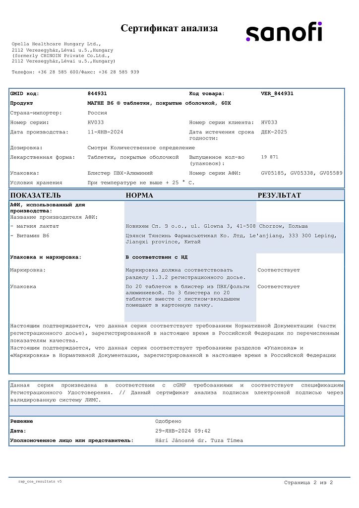 Документы Магне B6 таблетки покрыт.об. 48 мг+5 мг 60 шт
