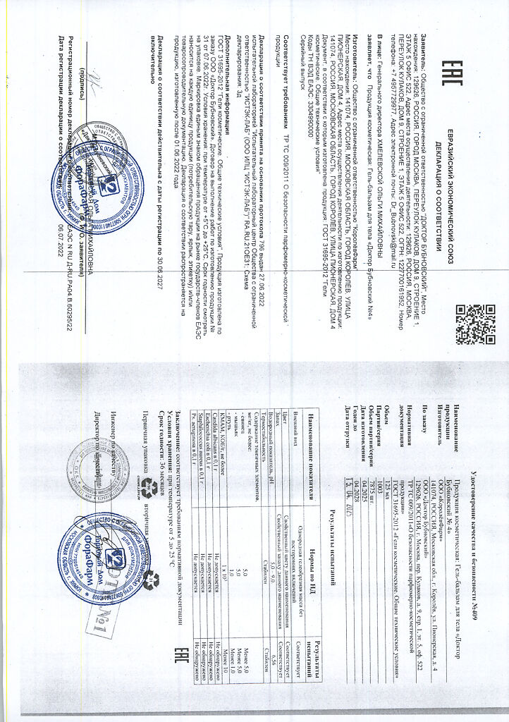 Документы Доктор Бубновский №4 Травмы и растяжения гель-бальзам для тела 125 мл 1 шт