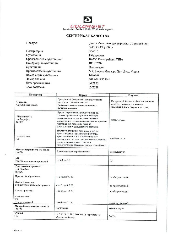 Производитель: Долоргит ГмбХ и Ко.КГ, Германия