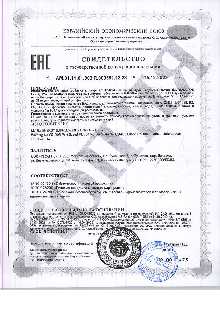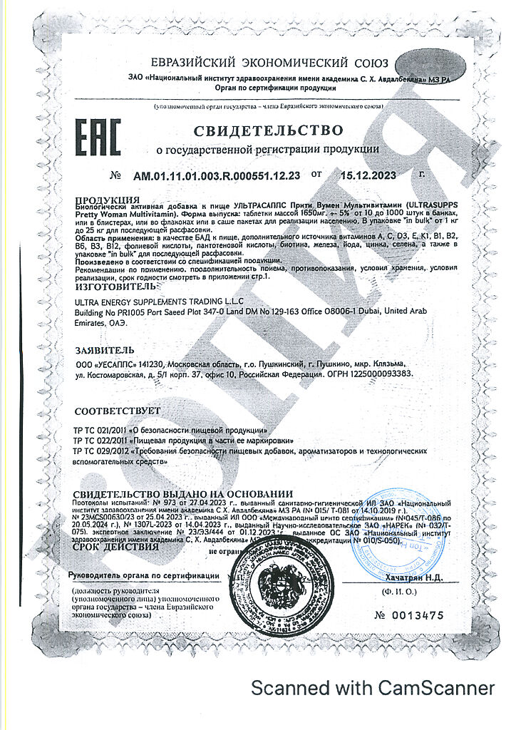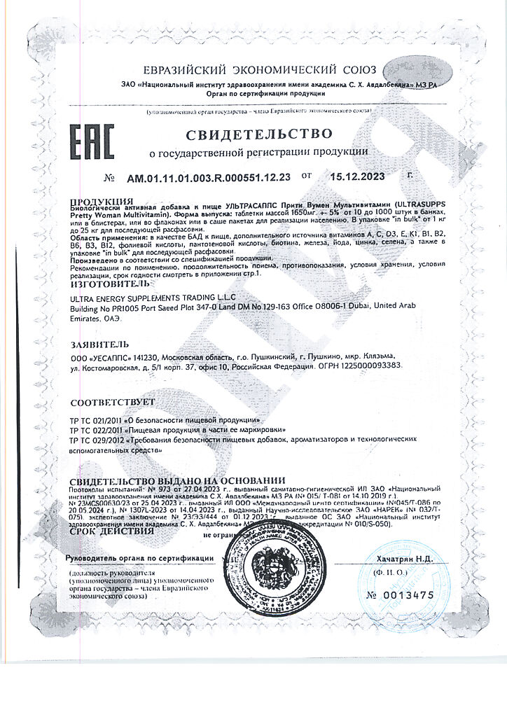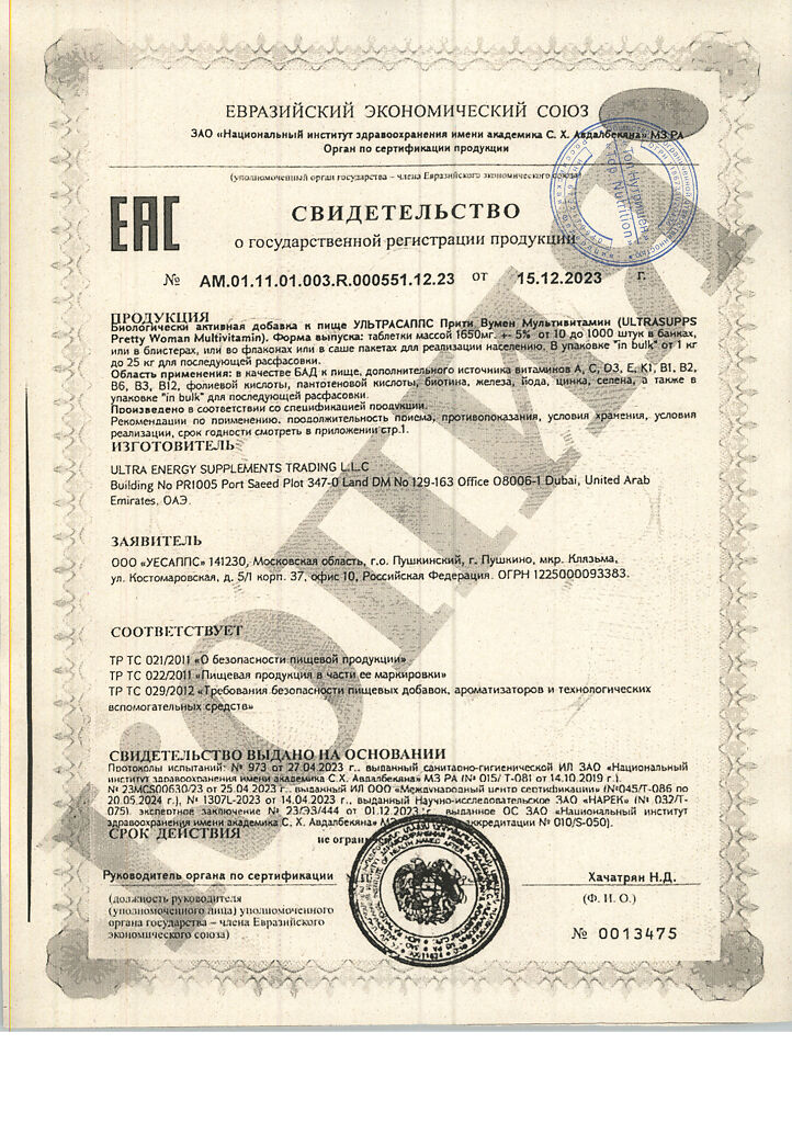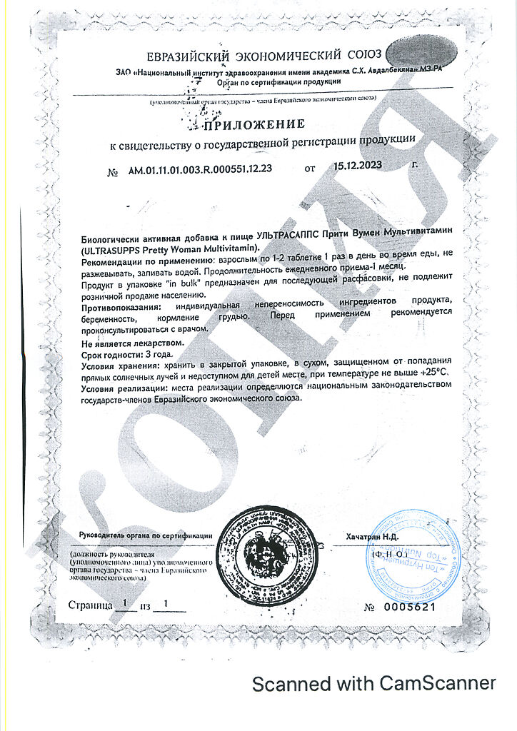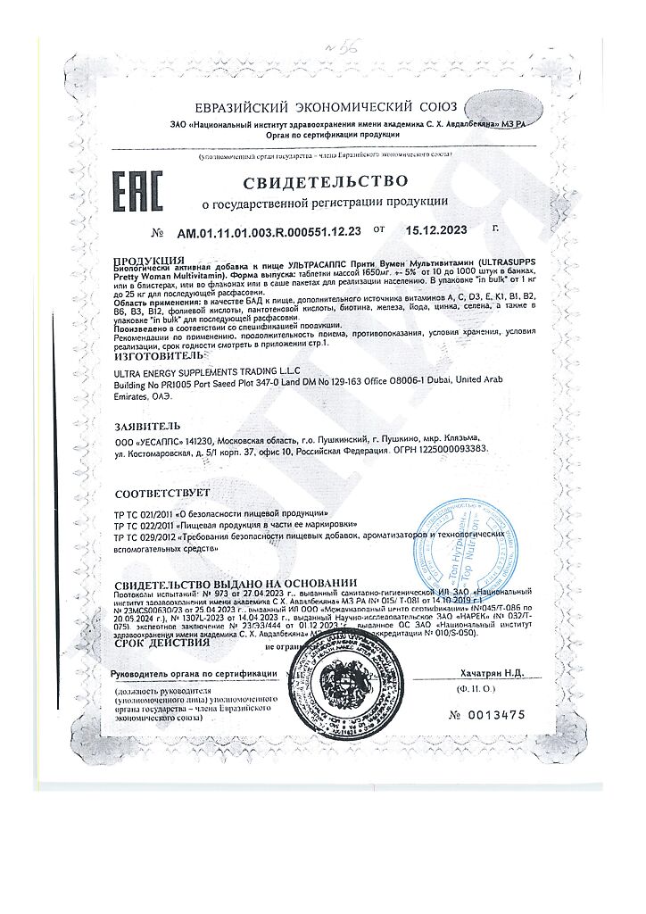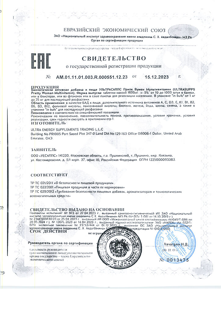Документы Ультрасаппс Прити Вумен Мультивитамин / Ultrasupps Pretty Woman Multivitamin витаминно-минеральный комплекс для женщин таблетки массой 1650 мг 60 шт