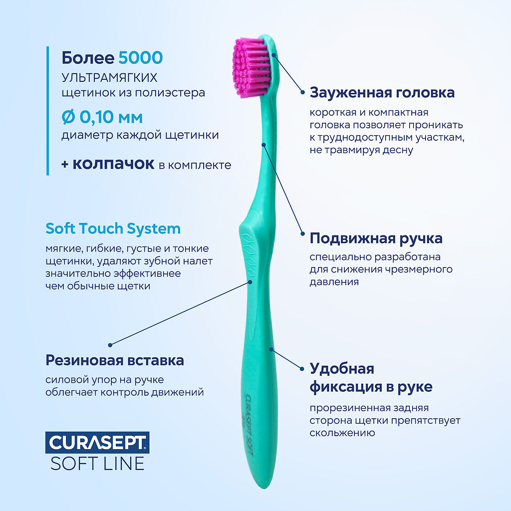 • 📒 Подробная инструкция по применению Curasept Softline Зубная щетка Maxi Soft 010 сверхмягкая 1 шт