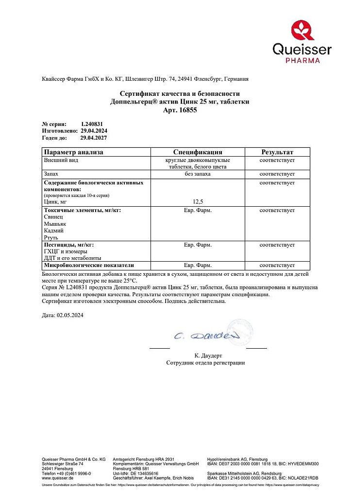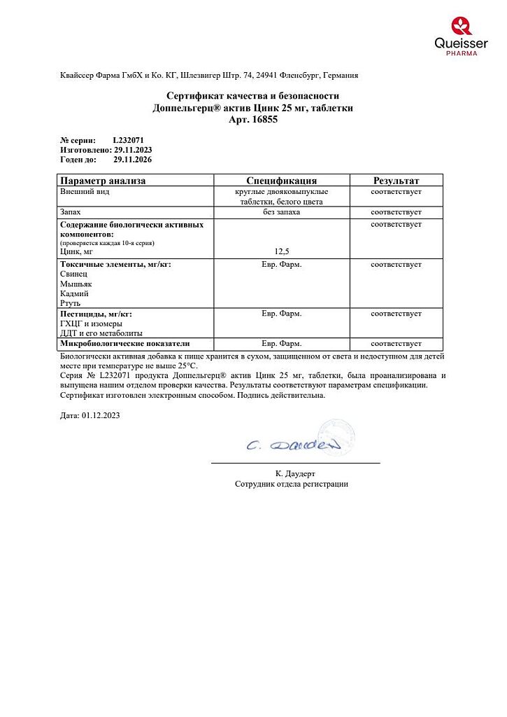 Производитель: Квайссер Фарма ГмбХ и Ко.КГ, Германия