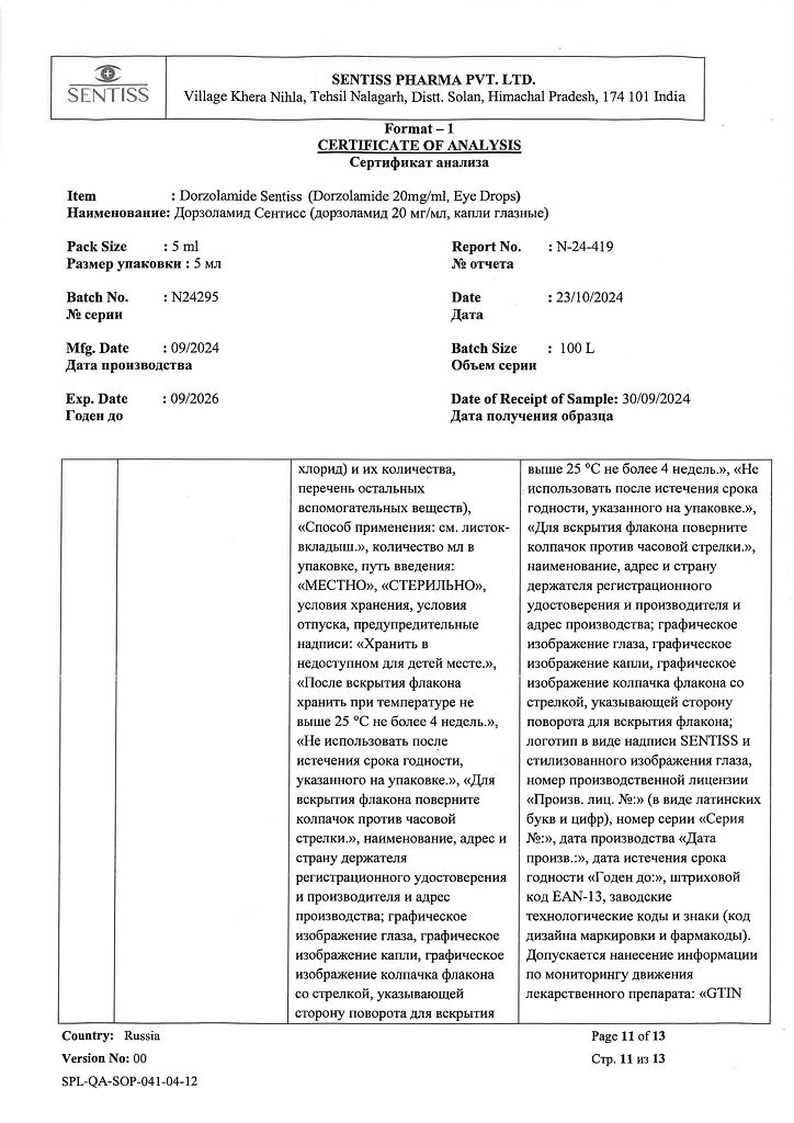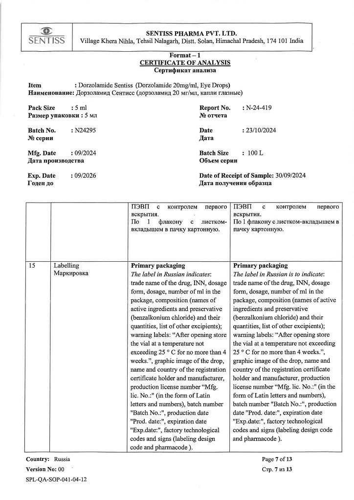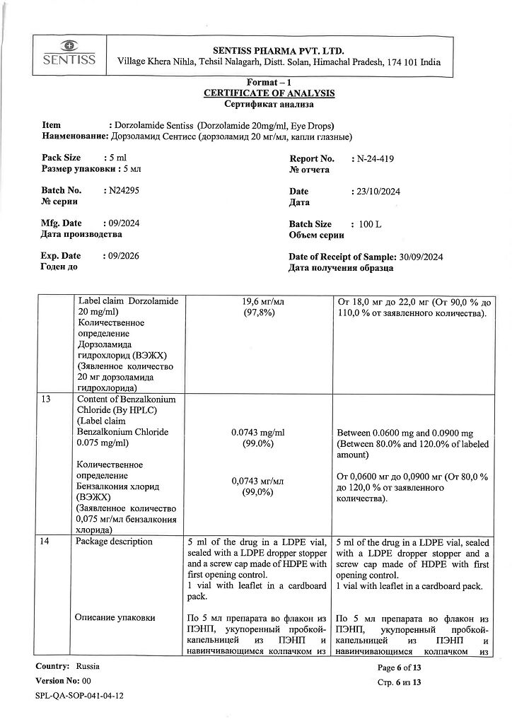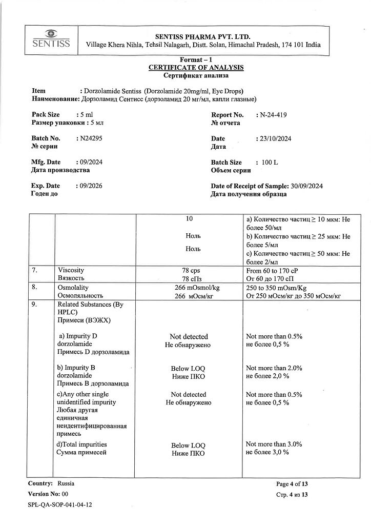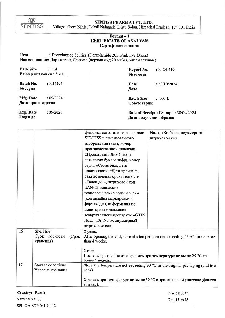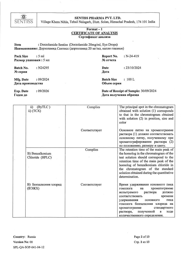 Производитель: Сентисс Фарма Пвт.Лтд, Индия