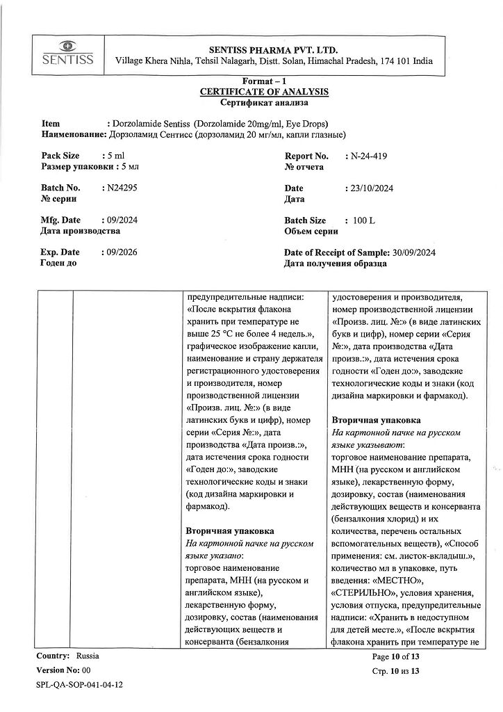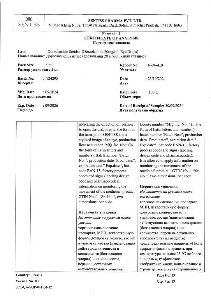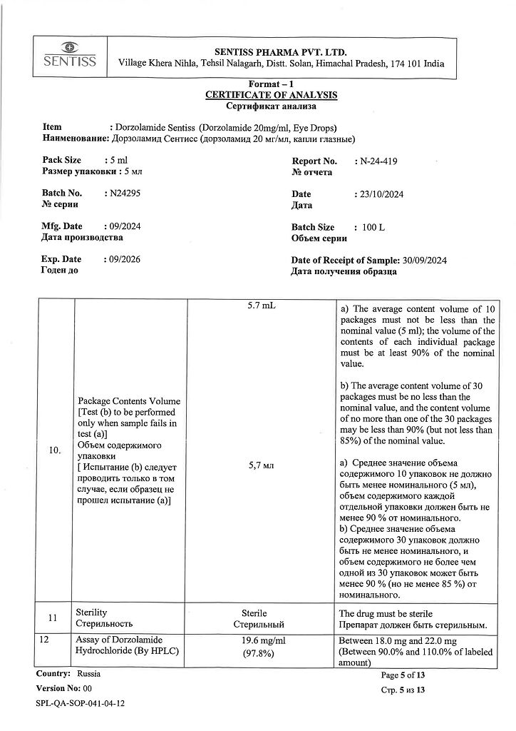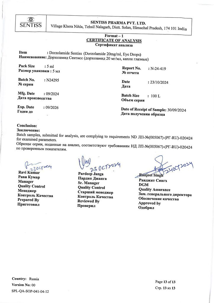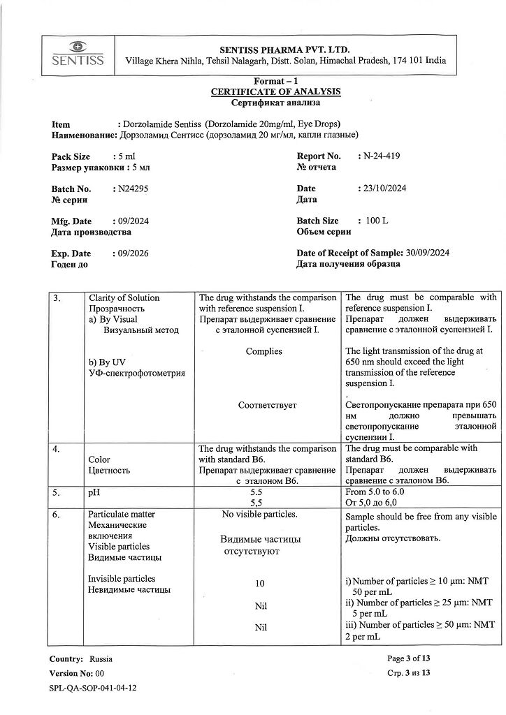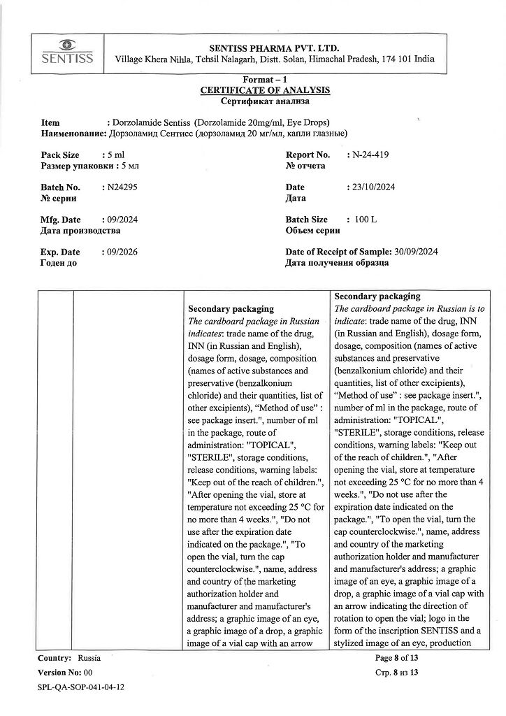 Производитель: Сентисс Фарма Пвт.Лтд, Индия
