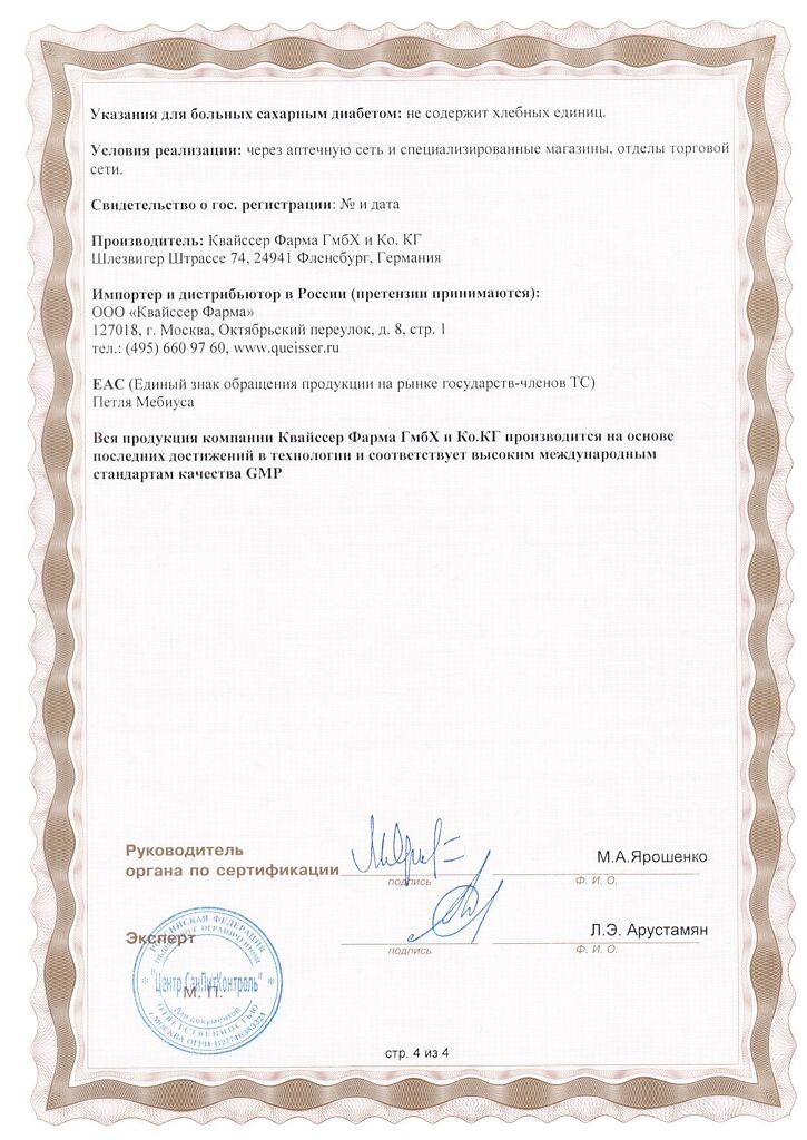Производитель: Квайссер Фарма ГмбХ и Ко.КГ, Германия