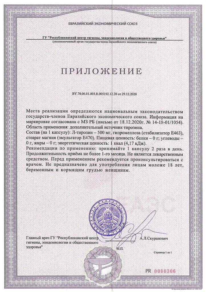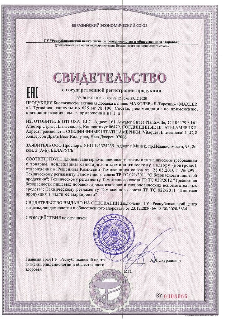 Документы Макслер Л-Тирозин / Maxler L-Tyrosine капсулы по 625 мг 100 шт 100 шт