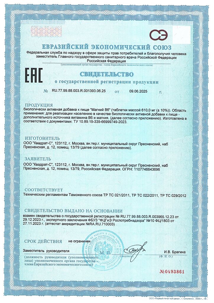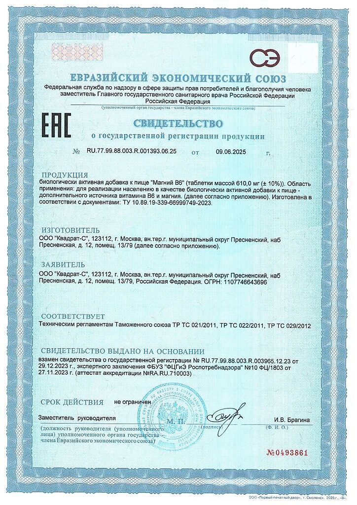 Документы Витамир Магний В6 таблетки массой 610 мг 60 шт