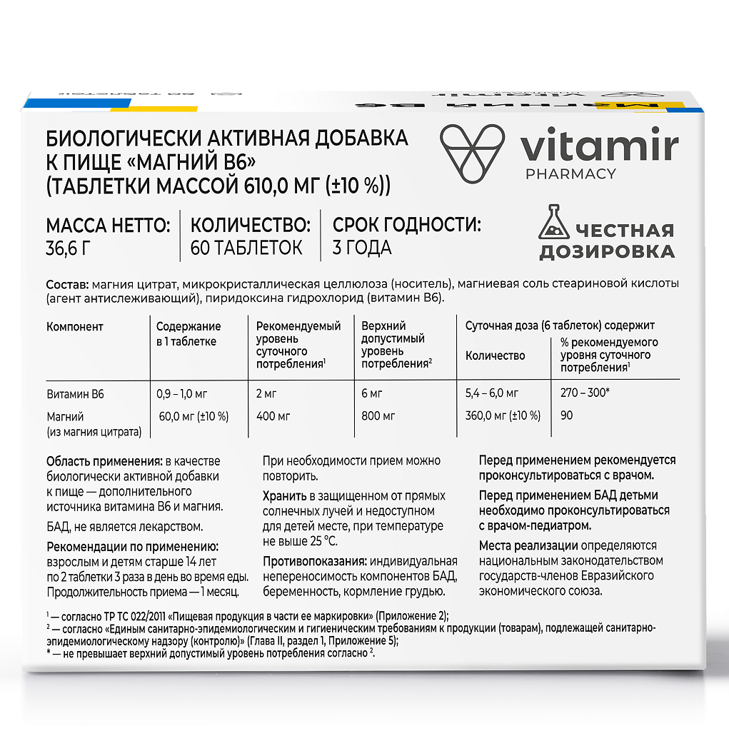 Витамир Магний В6 таблетки массой 610 мг 60 шт: отзывы покупателей и фармацевтов