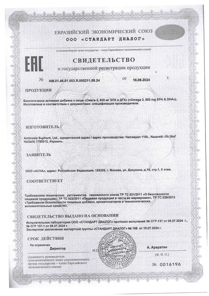Документы Fortevit Expert Омега-3 Макс 600 мг ЭПГ и ДГК/Omega-3 Max 600 mg EPA&DHA капсулы массой 1400 мг 60 шт