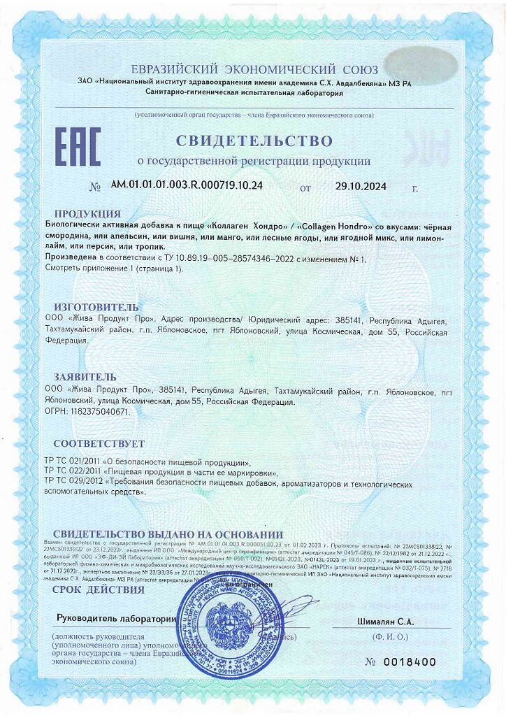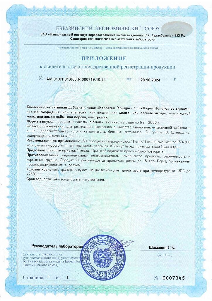 Документы Health Solution Коллаген Хондро/Сollagen Hondro со вкусом апельсина порошок массой по 180 г 1 шт