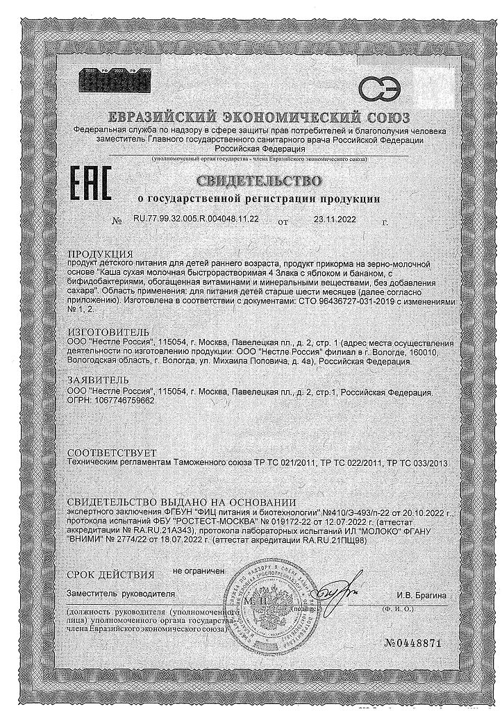 Документы Nestle Каша молочная мультизлаковая с яблоком и бананом с пробиотиком BL с 6 мес пакет 200 г 1 шт