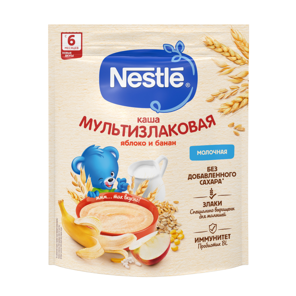 Nestle Каша молочная мультизлаковая с яблоком и бананом с пробиотиком BL с 6 мес пакет 200 г 1 шт: отзывы покупателей и фармацевтов