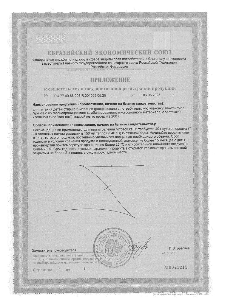 Не варите! Кормите ребенка чистой ложкой. Кашу следует готовить непосредственно перед каждым кормлением. Следуйте инструкции на упаковке. Не храните оставшуюся после кормления разведённую кашу. Начинайте вводить новый продукт с 1 чайной ложки, постепенно увеличивая порцию до необходимого объема.