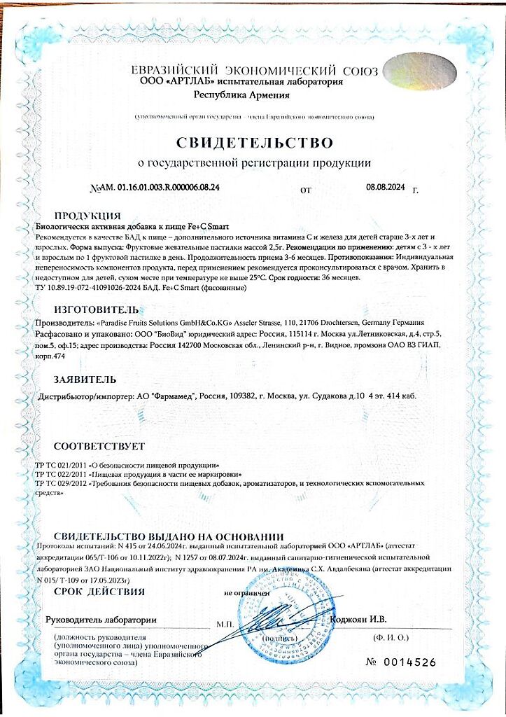Документы Смарт Фрутс Железо+Витамин С смарт/Smart Fruits Fe+C smart фруктовые жевательные пастилки массой 2,5 г 30 шт
