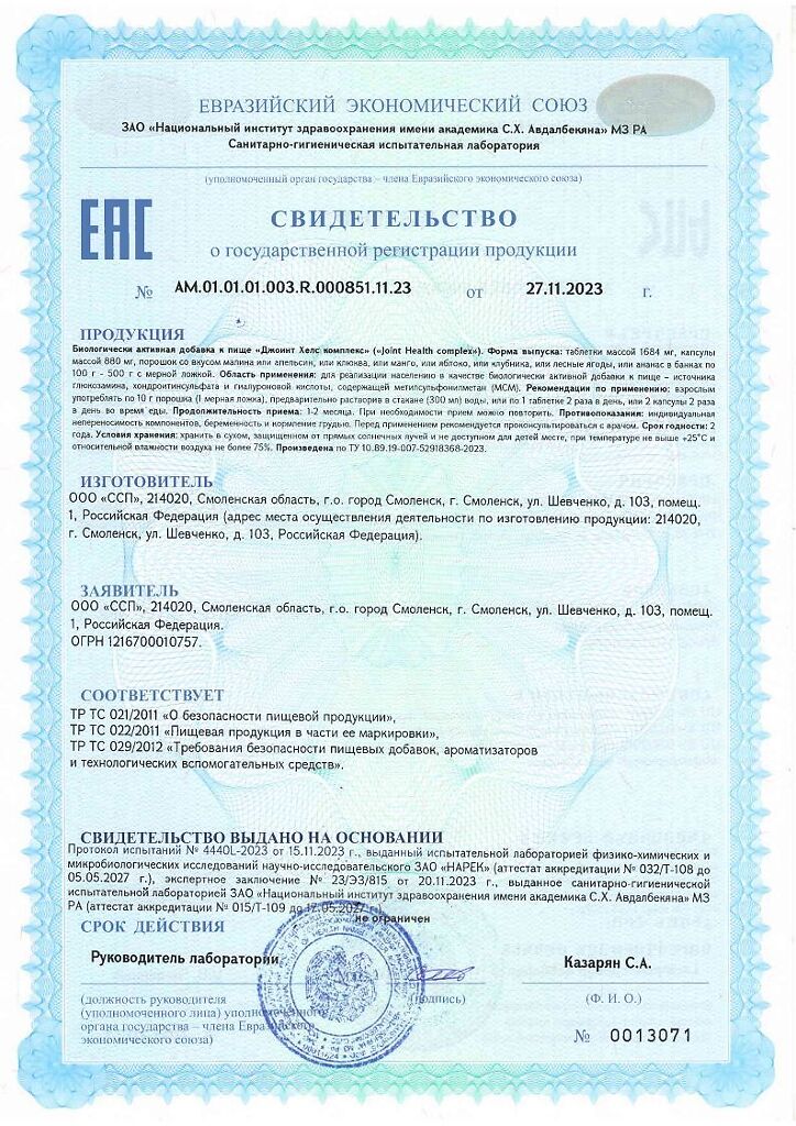 Документы 2SN Джоинт Хелс комплекс/Joint Health complex таблетки массой 1684 мг 90 шт