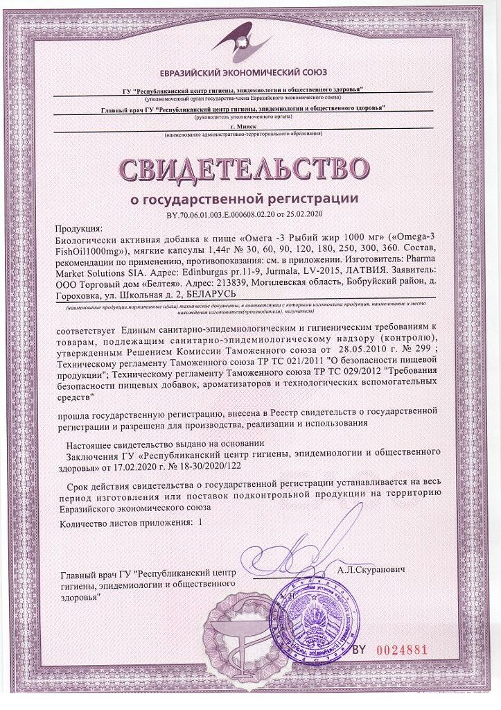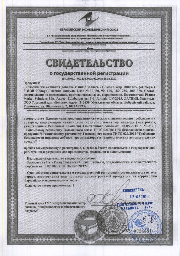 Документы Herbs Омега-3 Рыбий жир 1000 мг/Omega-3 Fish Oil 1000 mg мягкие капсулы 1,44 г 60 шт