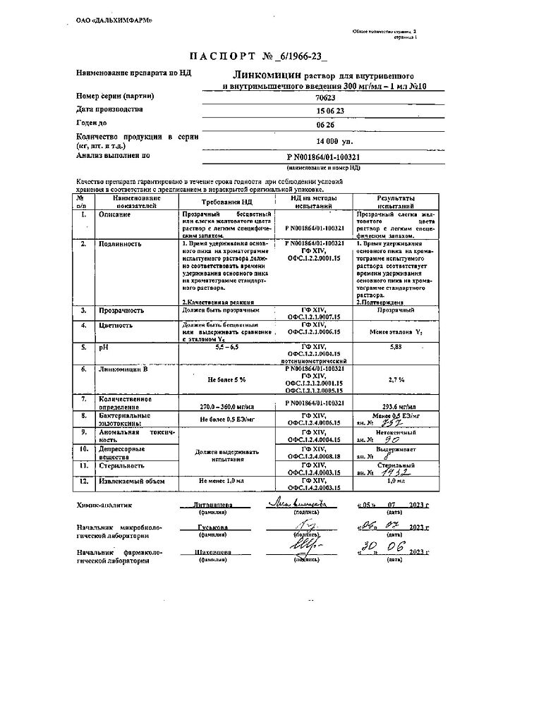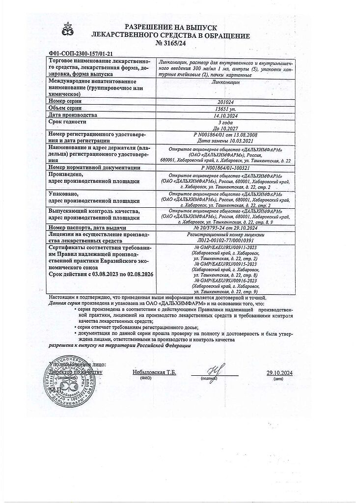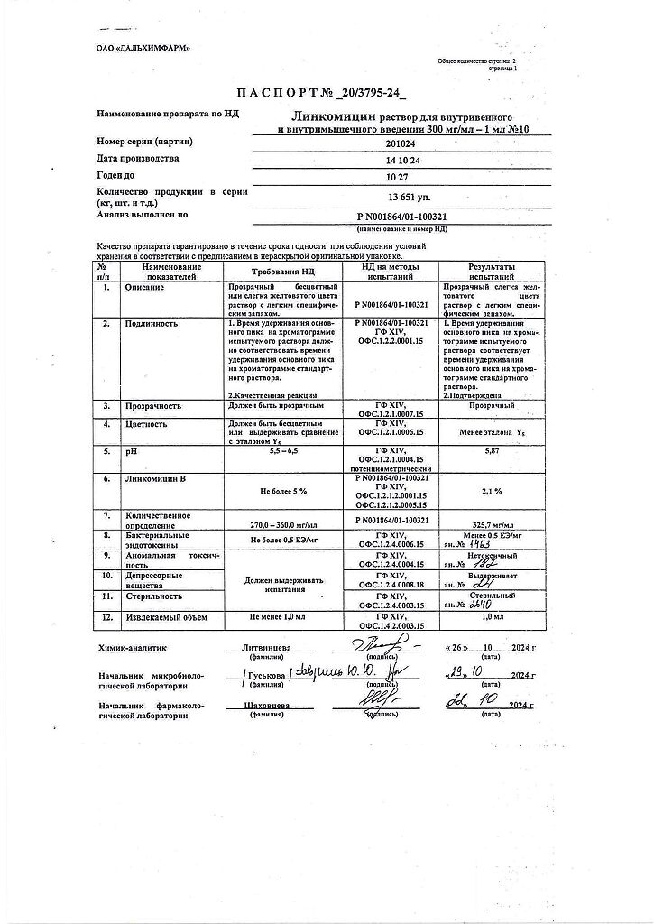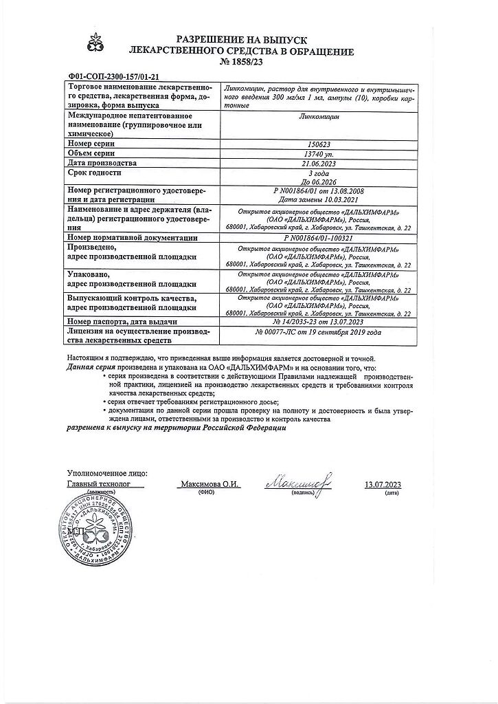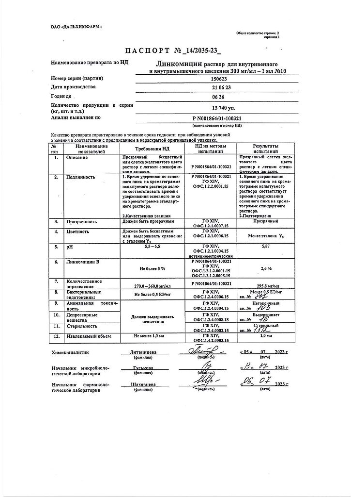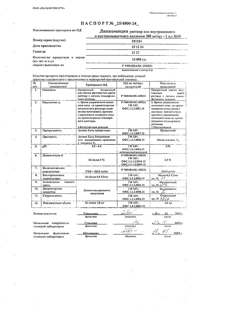 Действующее вещество: Линкомицин