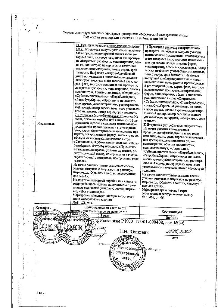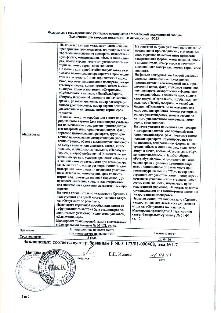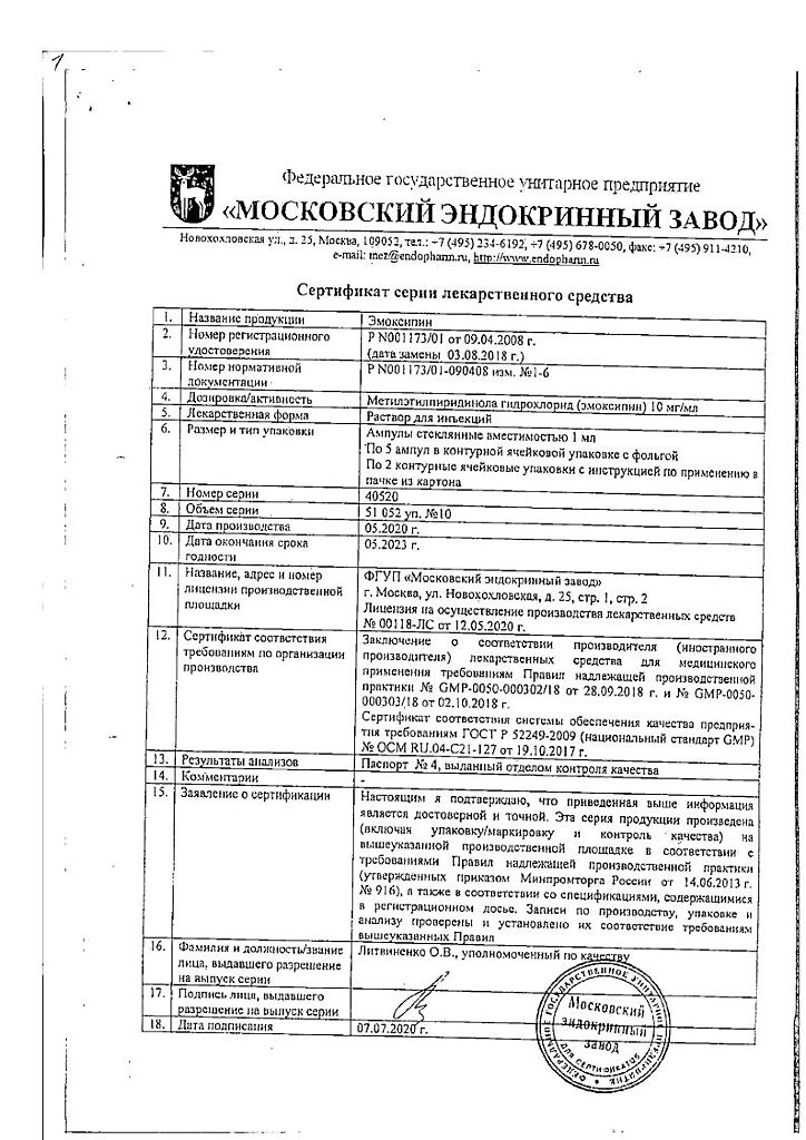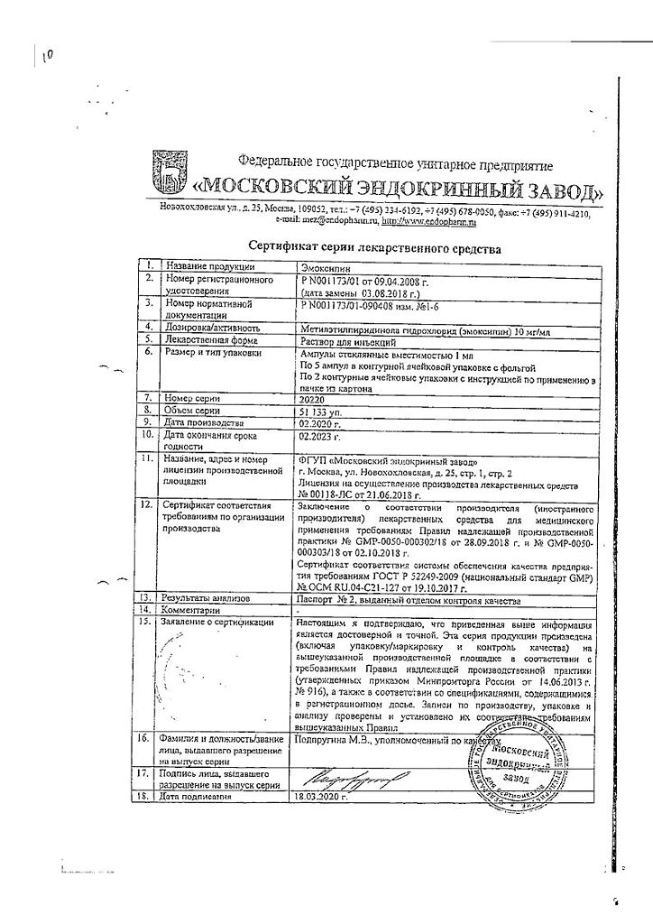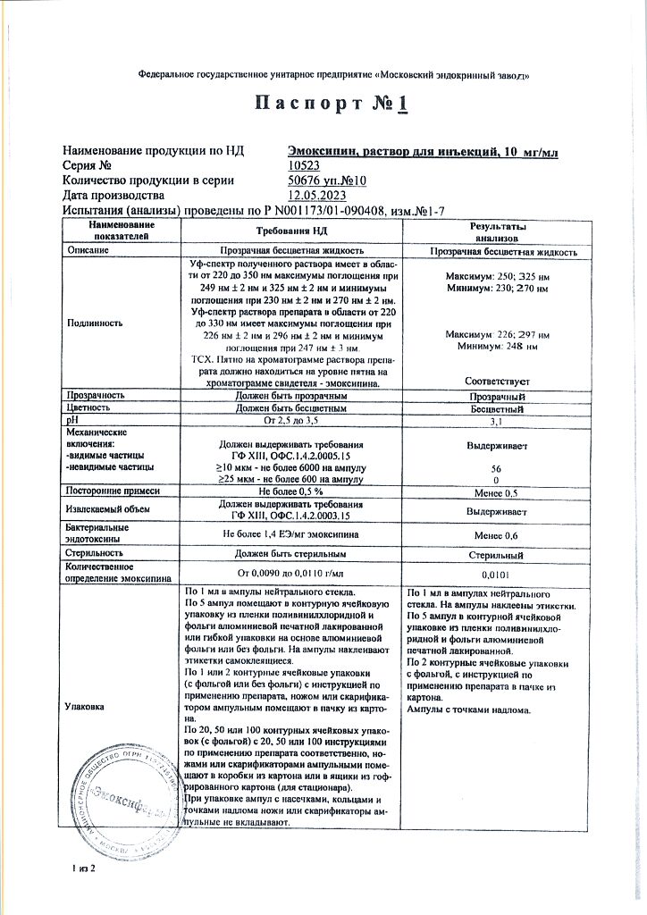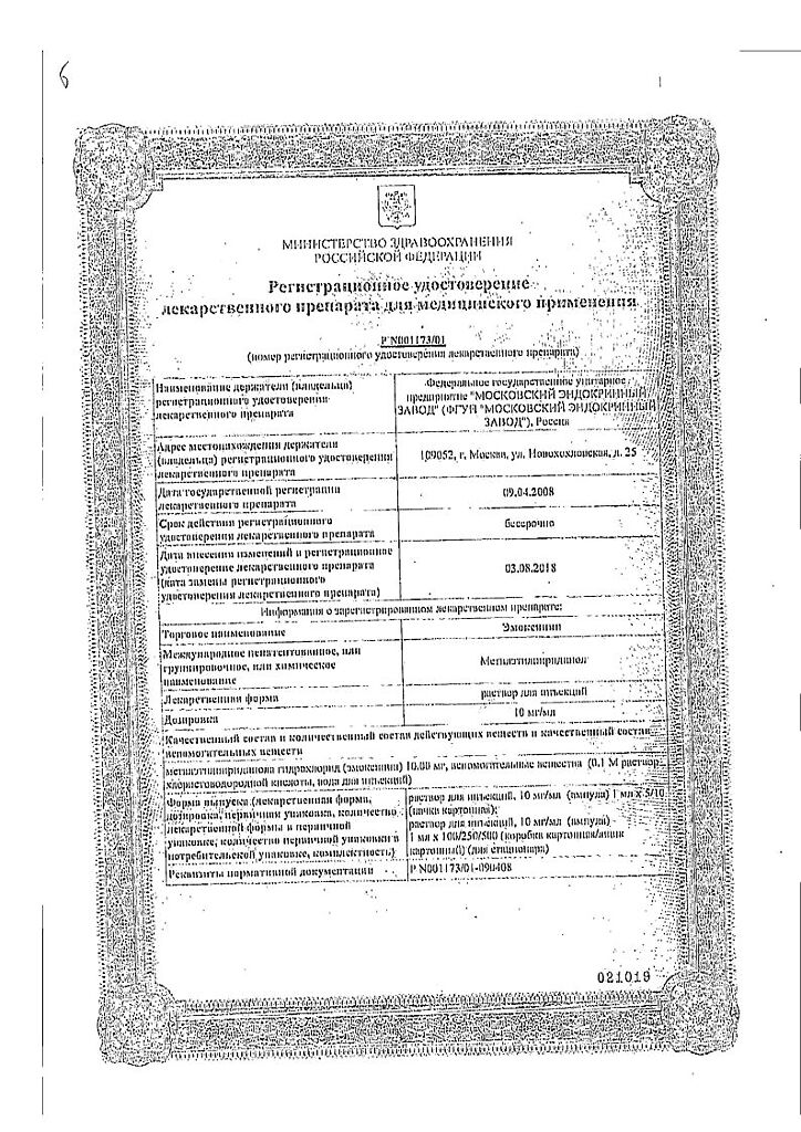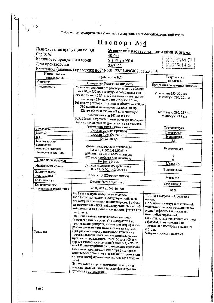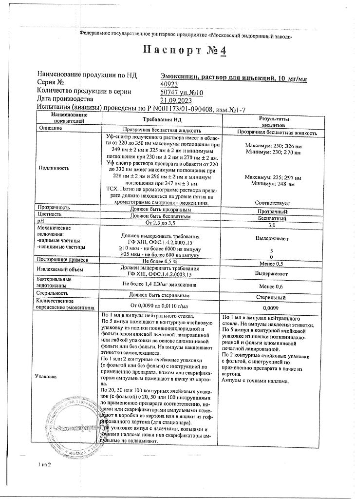 Документы Эмоксипин раствор для инъекций 10 мг/мл 1 мл амп 10 шт