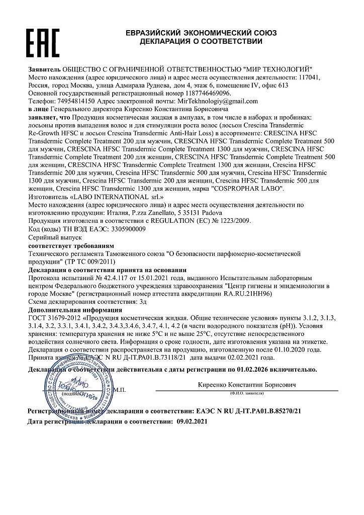 Производитель: Labo International S.r.l, Италия