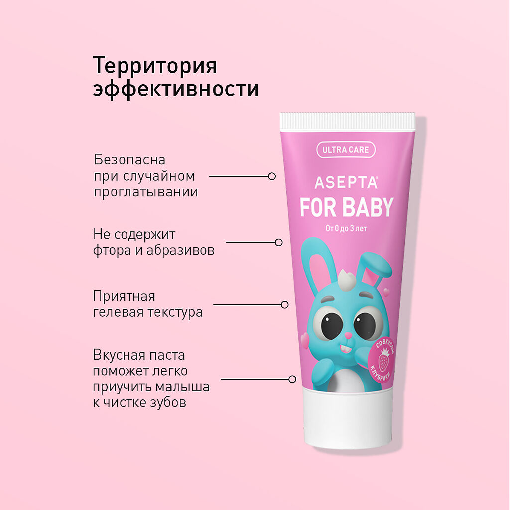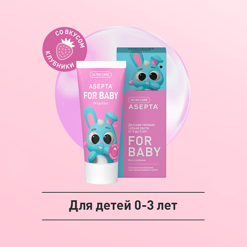 Зубная паста для малышей «АСЕПТА baby»– это средство для бережного очищения чувствительных молочных зубов от остатков пищи и профилактики зубного налета. Уникальная гелевая структура не повреждает молочную эмаль, а входящие в состав лечебной зубной пасты для детей растительные экстракты оказывают успокаивающее действие, предотвращая развитие воспалений полости рта.