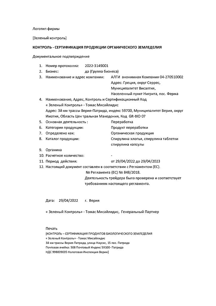 Производитель: Глобал Хэлфкеар ООО, Россия