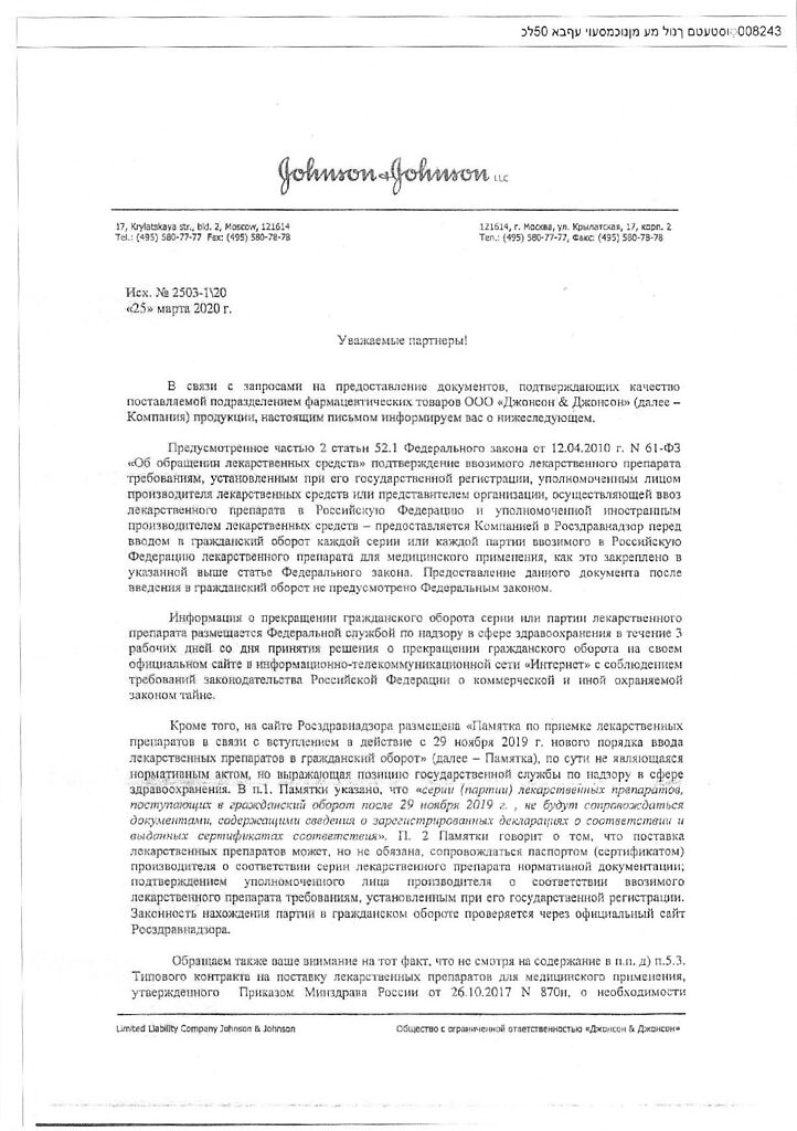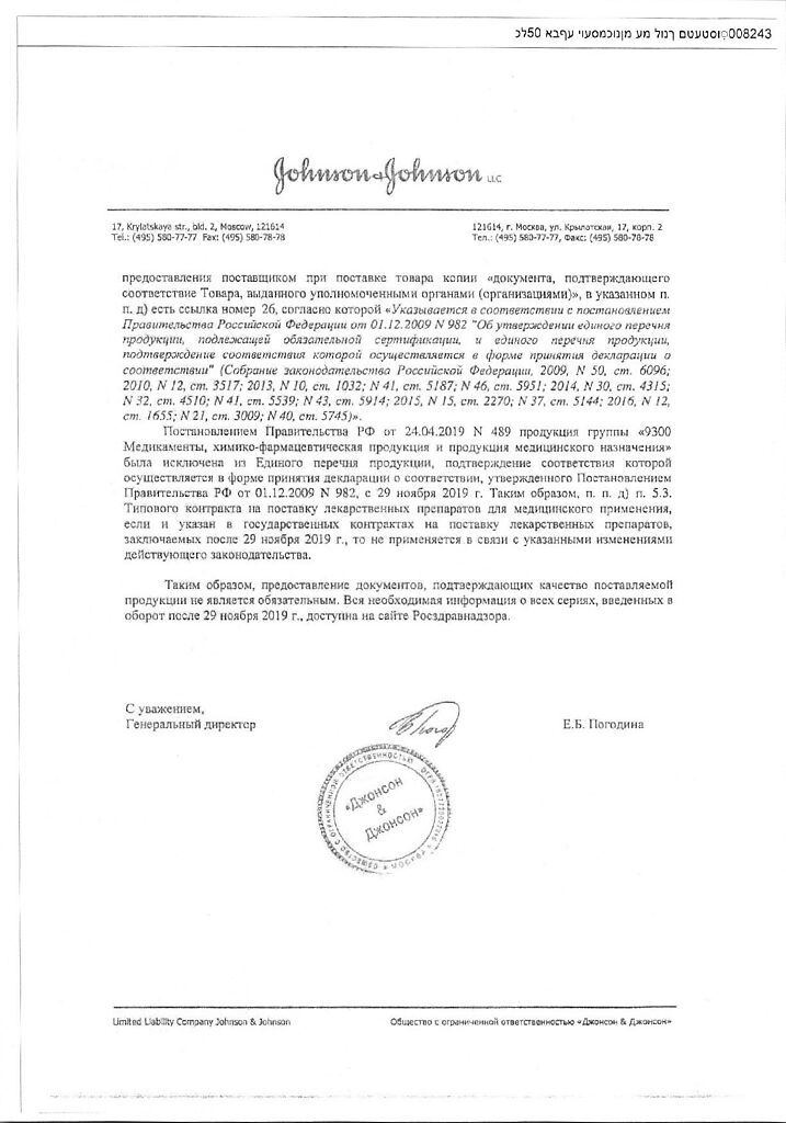 Производитель: Джонсон и Джонсон, Франция