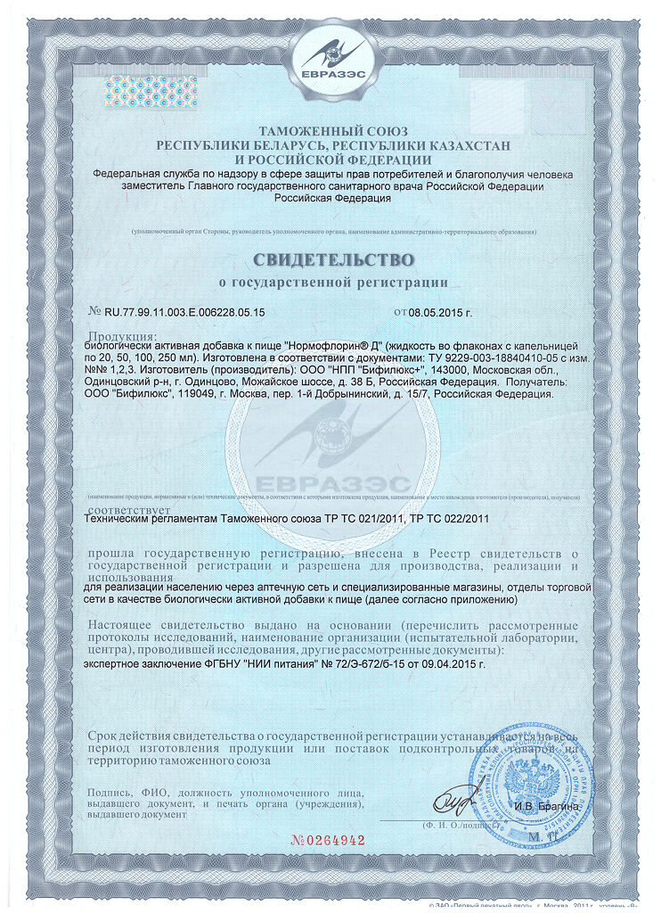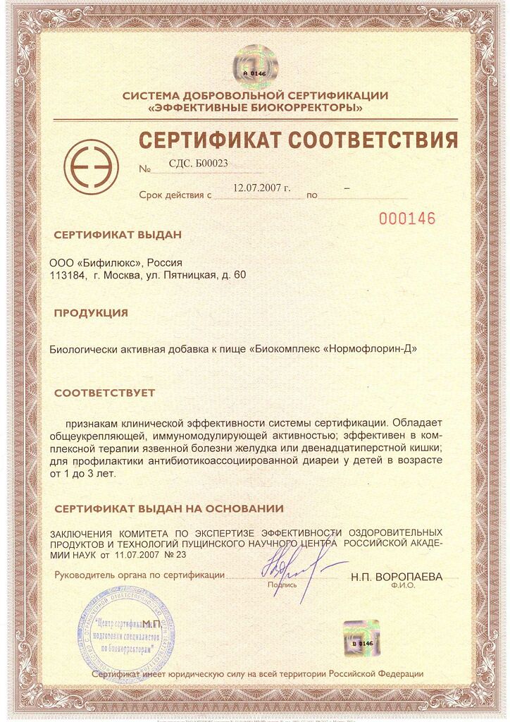 Нормофлорин-Д - Биологически активная добавка к пище.