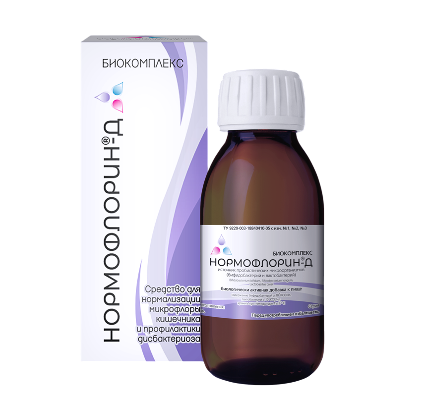 Дополнительные сведения. В производстве биокомплексов Нормофлорин Д не используются генетически модифицированные штаммы микроорганизмов. Они приготовлены на молочном гидролизате, в процессе производства протеины переходят в олигопептиды, дипептиды и аминокислоты (показаны при аллергии к белкам коровьего молока). Не содержат лактозы, консервантов, красителей, адаптеров вкуса.
