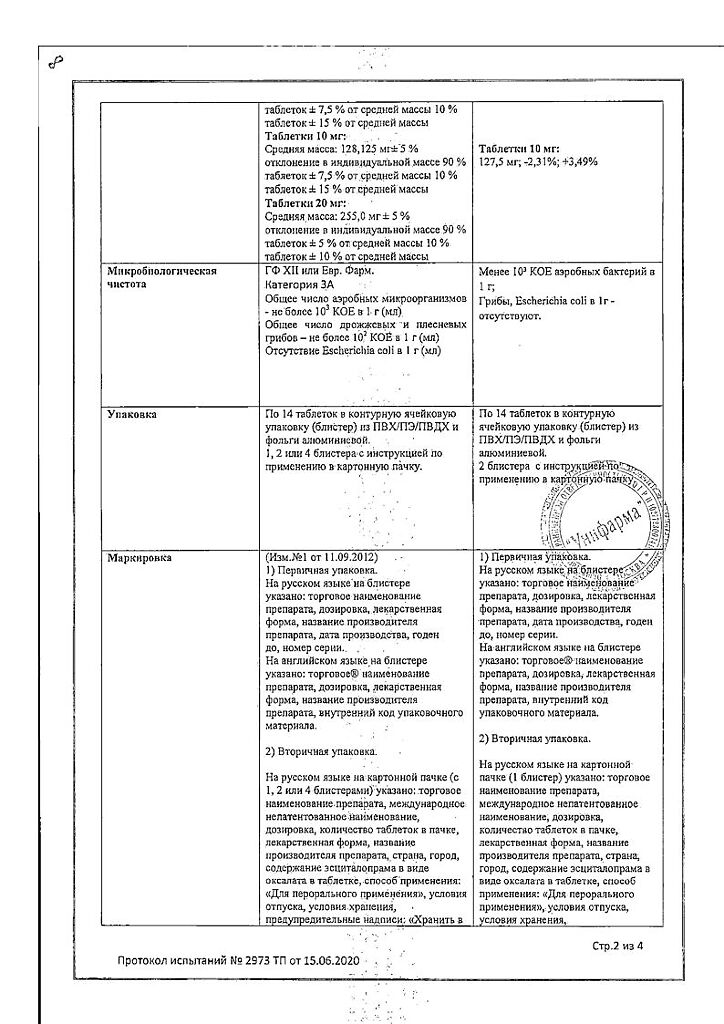 Действующее вещество: Эсциталопрам