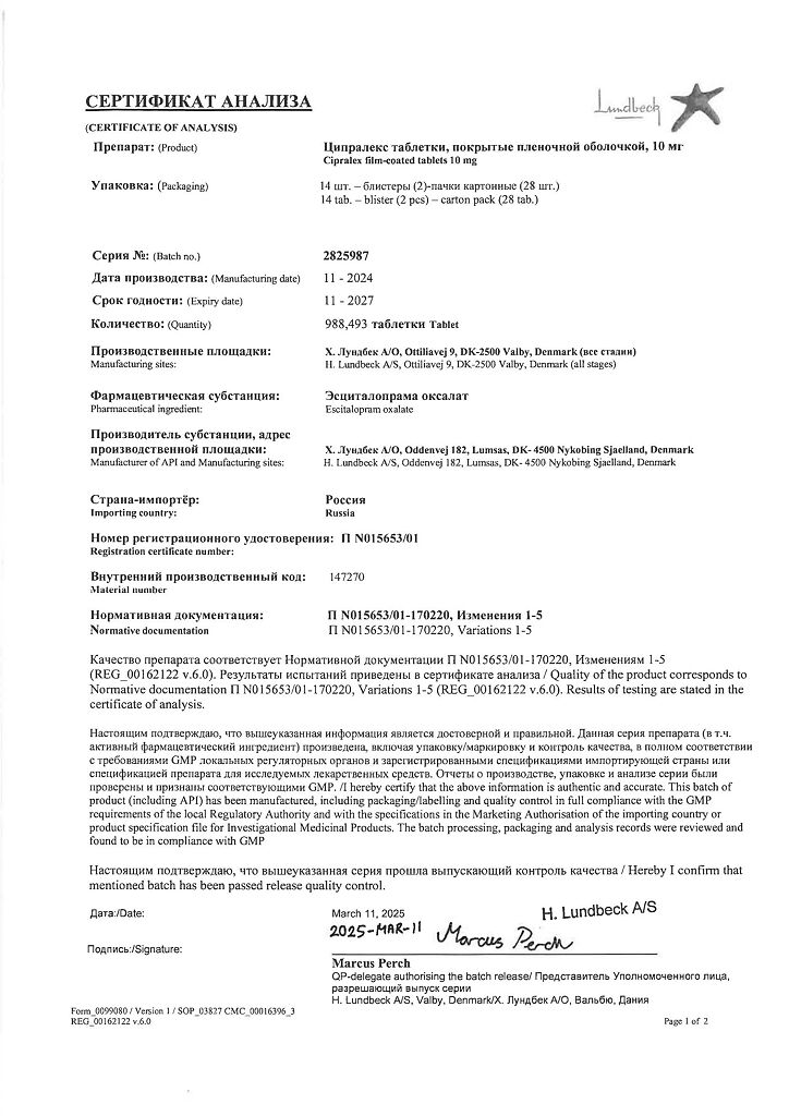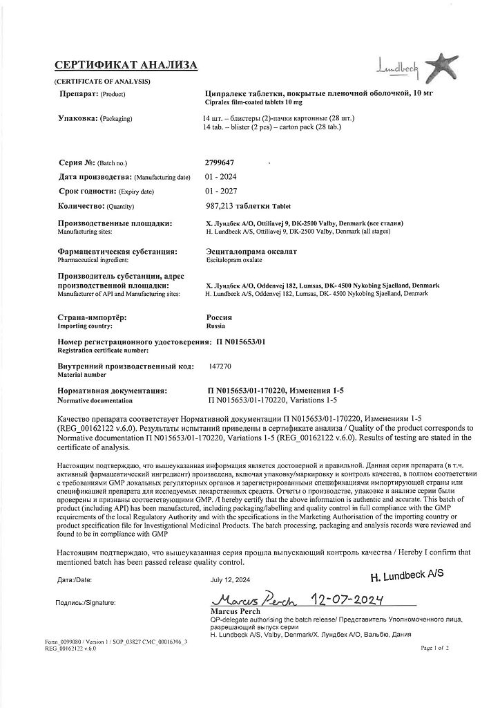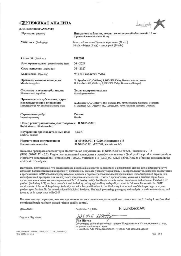 Документы Ципралекс