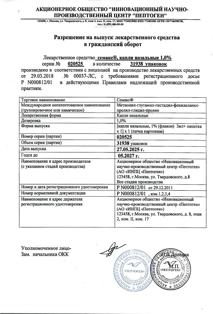 Действующее вещество: Метионил-глутамил-гистидил-фенилаланил-пролил-глицил-пролин