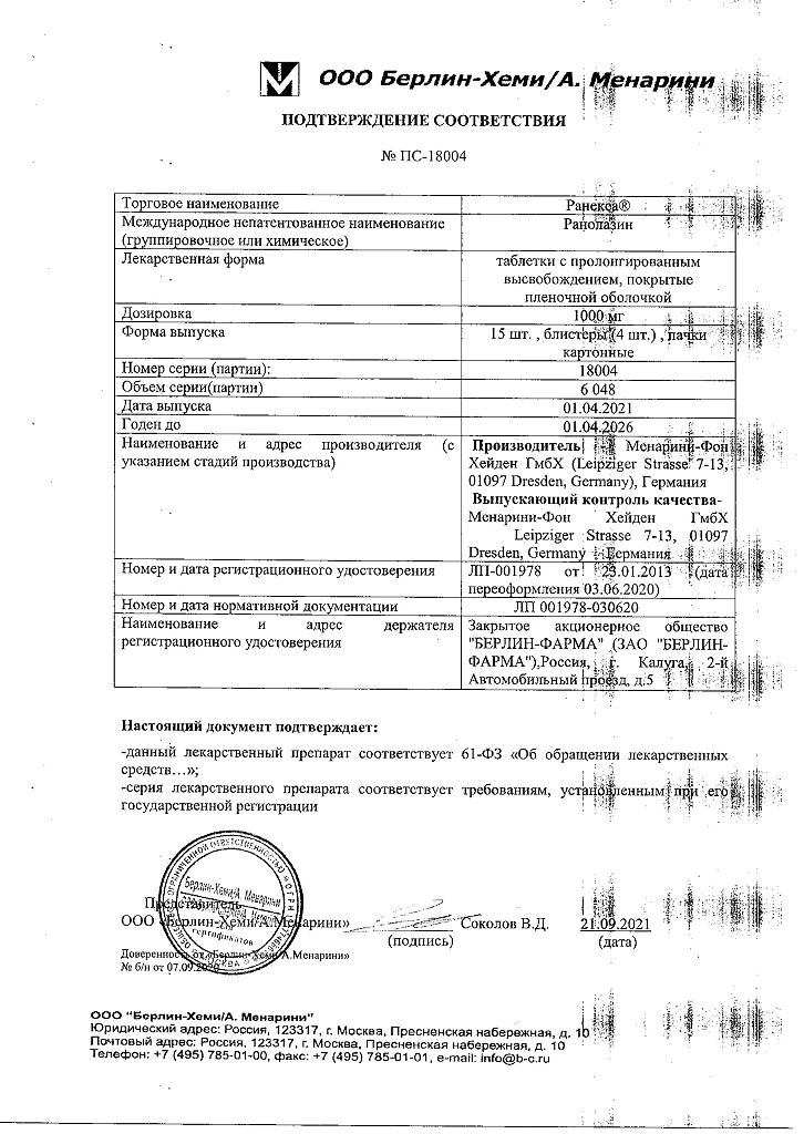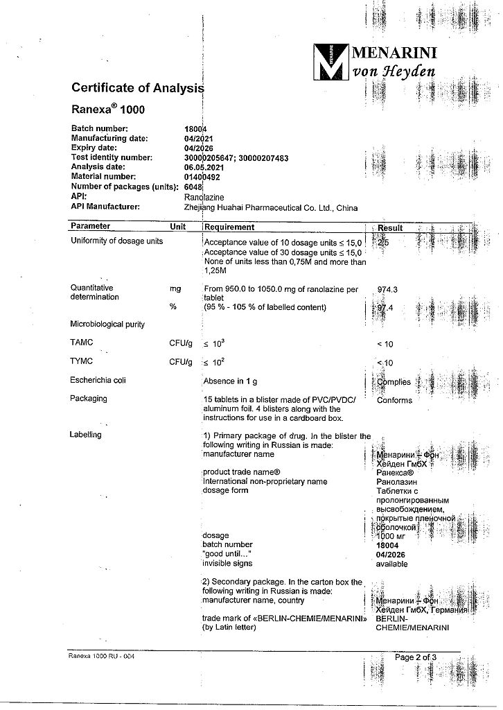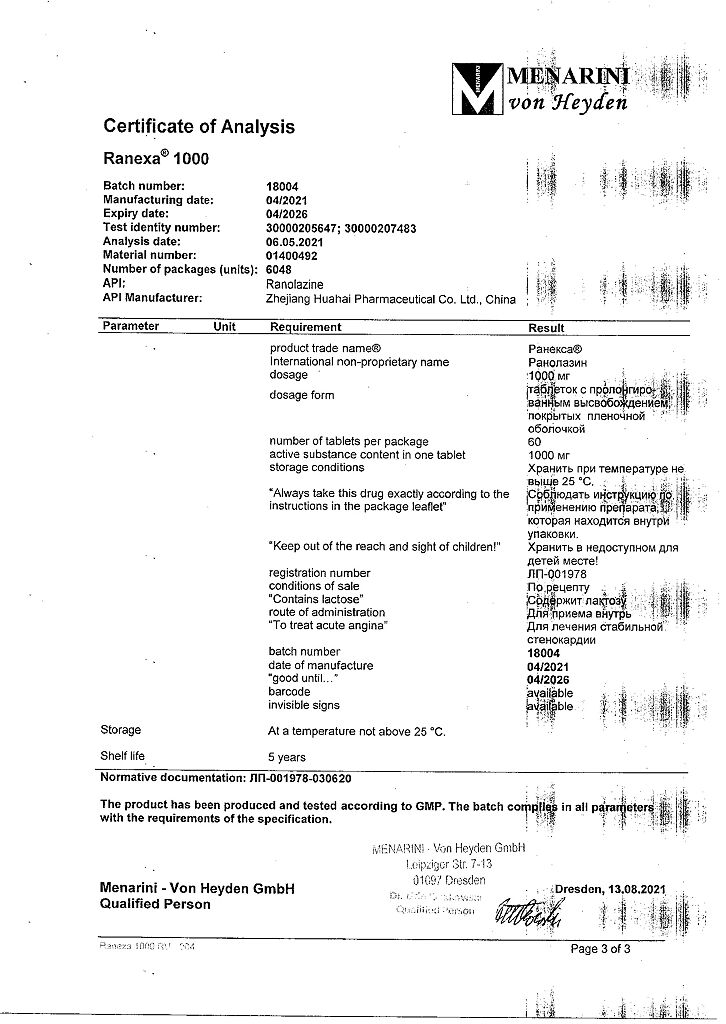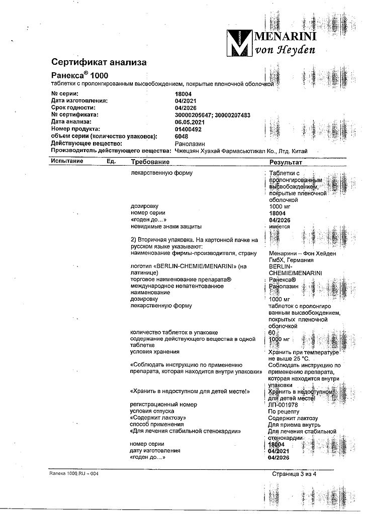 Документы Ранекса таблетки с пролонг высвобождением покрыт.плен.об. 1000 мг 60 шт