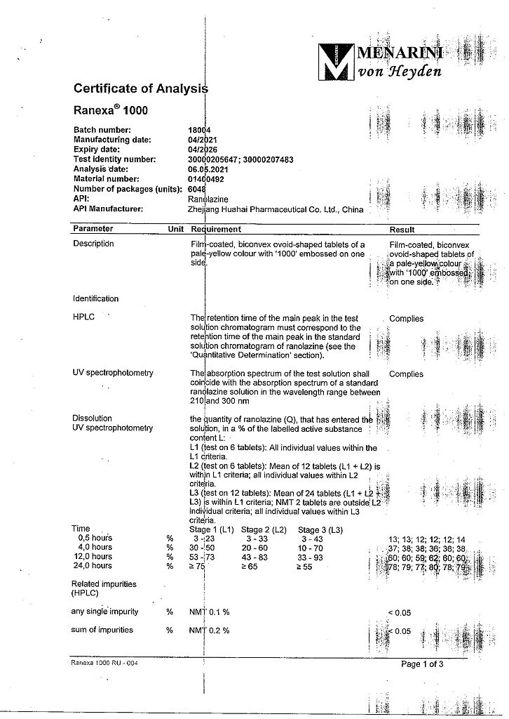 Действующее вещество: Ранолазин