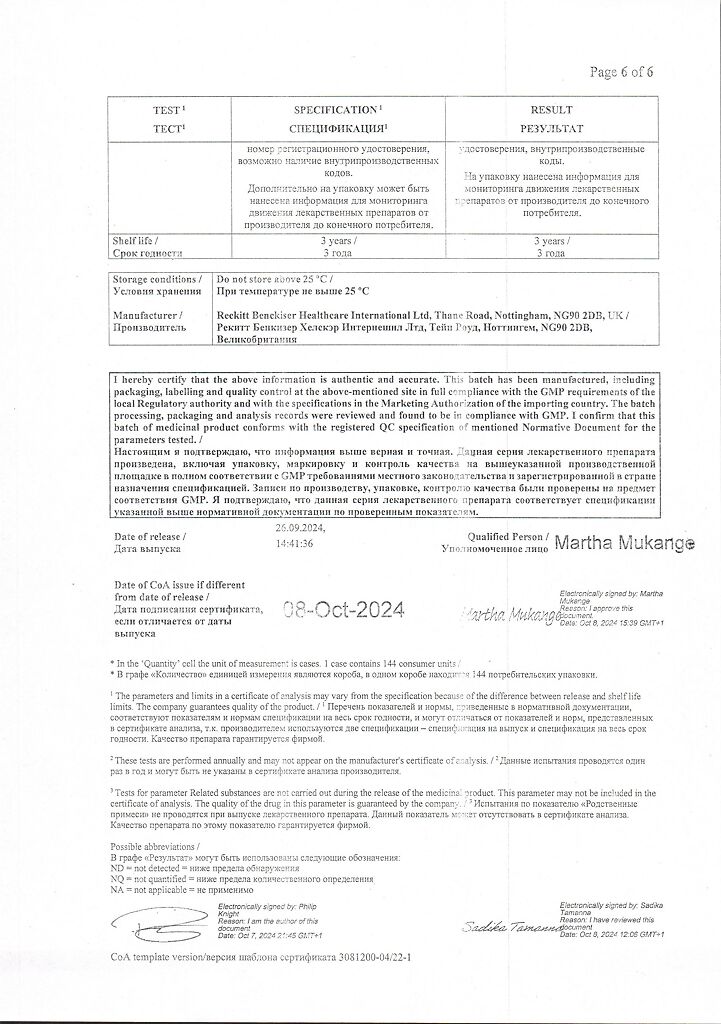 Производитель: Рекитт Бенкизер Хелскэр (Великобритания) Лимитед, Великобритания