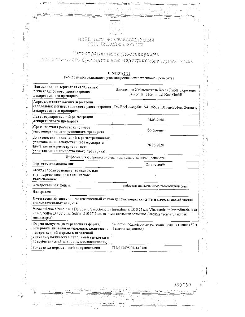Активные компоненты: Vincetoxicum hirundinaria (Винцетоксикум гирундинария) D6 75 мг, Vincetoxicum hirundinaria (Винцетоксикум гирундинария) D10 75 мг, Vincetoxicum hirundinaria (Винцетоксикум гирундинария) D30 75 мг, Sulfur (Сульфур) D4 37,5 мг, Sulfur (Сульфур) D10 37,5 мг;