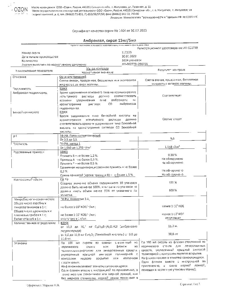 Документы Амброксол сироп 15 мг/5 мл 100 мл 1 шт