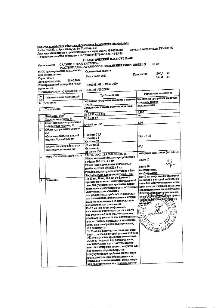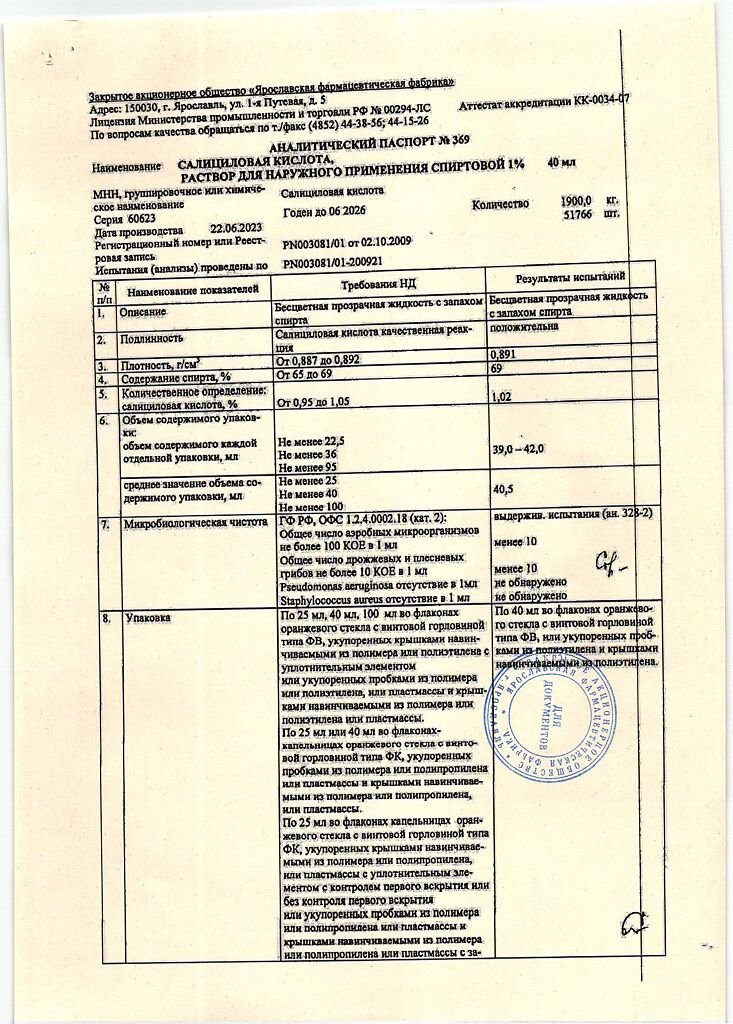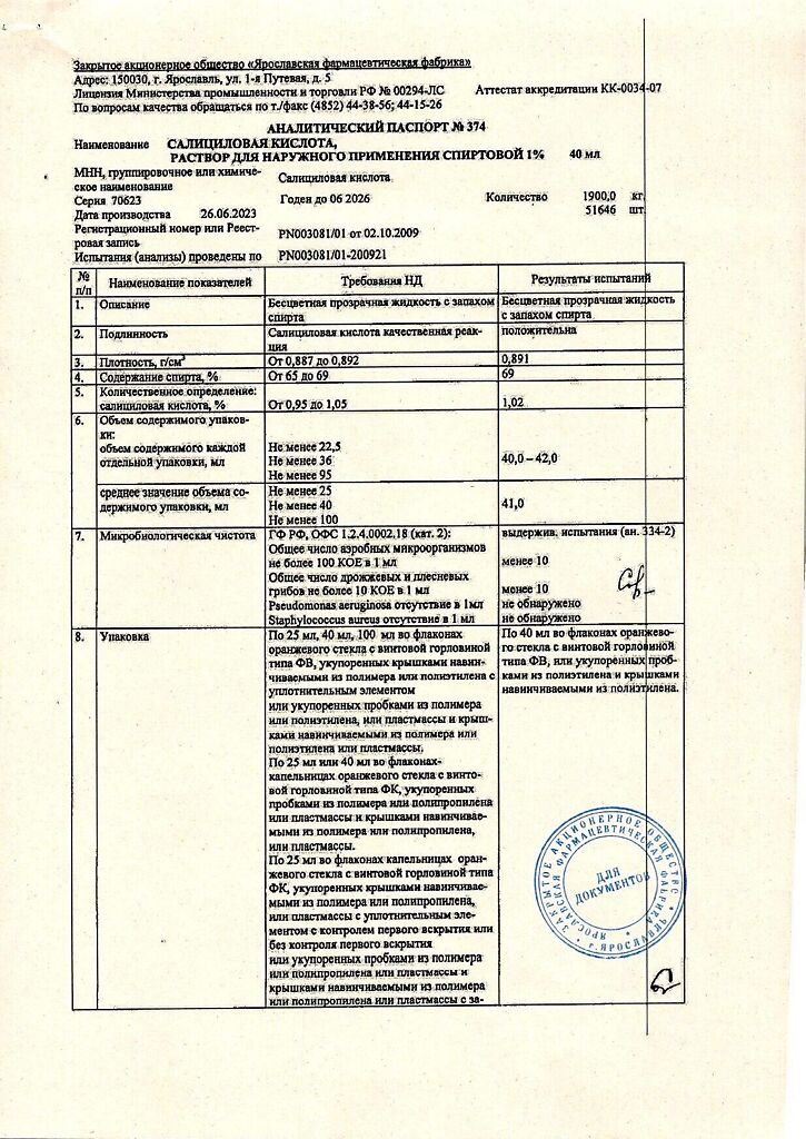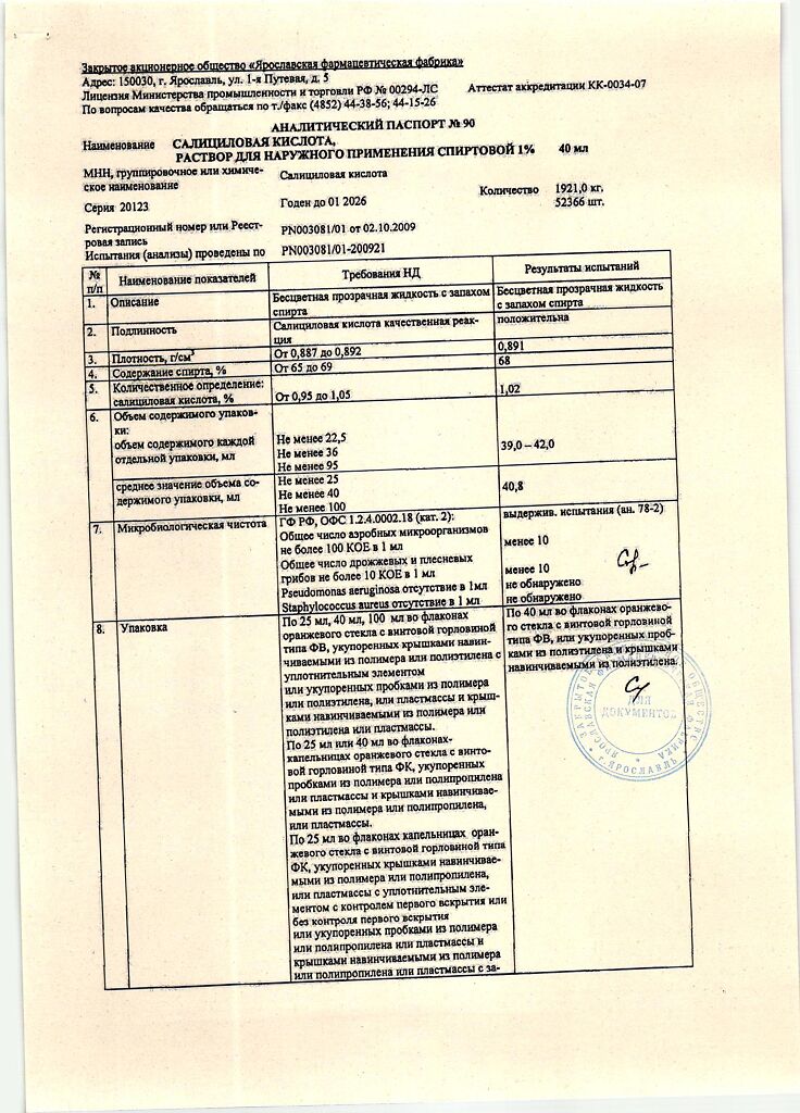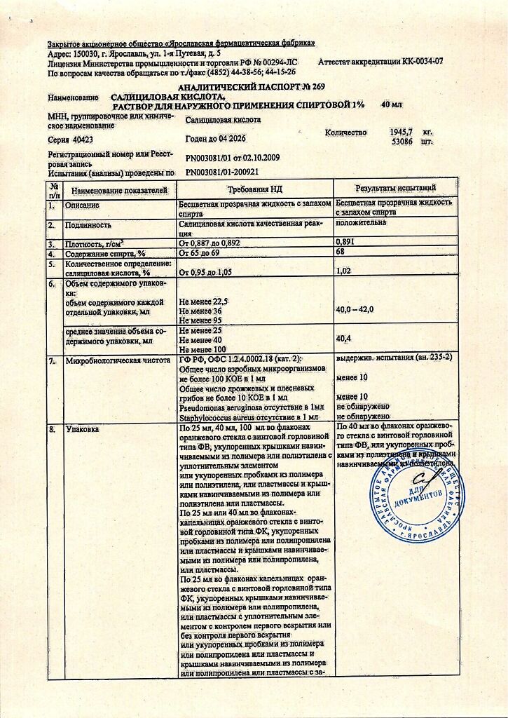 Документы Салициловой кислоты раствор для наружного применения спиртовой 1 % фл 40 мл 1 шт