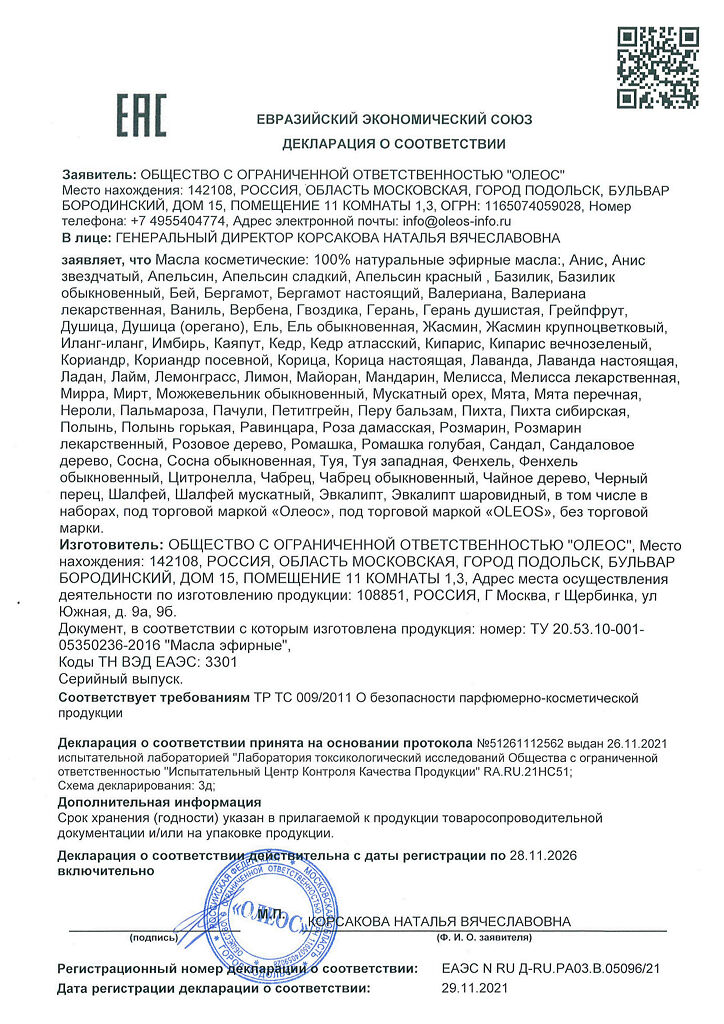 Внимание! Эфирные масла - высококонцентрированные фитоэссенции. В косметических целях следует применять только в смеси с растительными (базовыми) маслами. Общие рекомендации по применению эфирных масел: Перед началом использования эфирного масла необходимо провести тест на отсутствие аллергической реакции. 1 каплю эфирного масла смешать с 1/3 чайной ложки растительного масла и нанести на внутреннюю поверхность предплечья или за ухо.2-3 капли эфирного масла нанести на носовой платок и в течение дня периодически вдыхать. Применение тестируемого масла возможно, если через 12 часов отсутствует аллергическая реакция на коже, головная боль, кашель, одышка, насморк, отечность лица. Меры предосторожности: -Не использовать в чистом виде. -Не применять внутрь. -Обязательно соблюдать рекомендуемые дозировки. Для детей и пожилых людей рекомендуемая доза, составляет 1/4 - 1/3 от дозы взрослого человека, указанной в инструкции. -Избегать попадания эфирных масел в глаза. При попадании эфирного масла в глаза или на слизистые оболочки необходимо промыть их большим количеством воды. Источник: