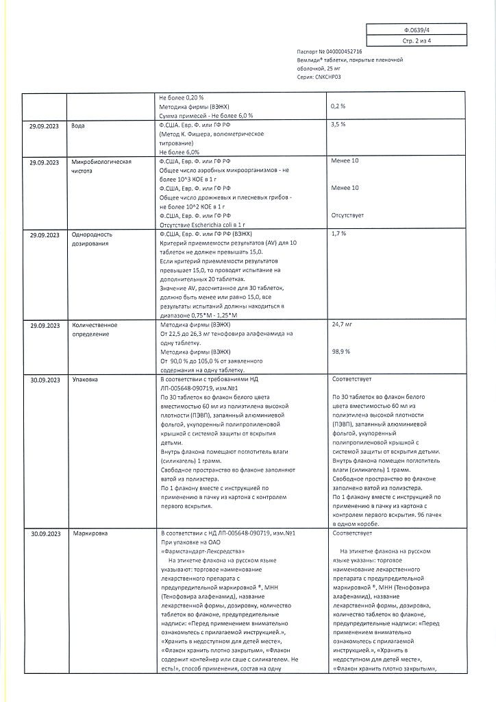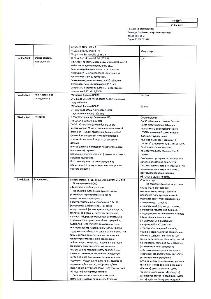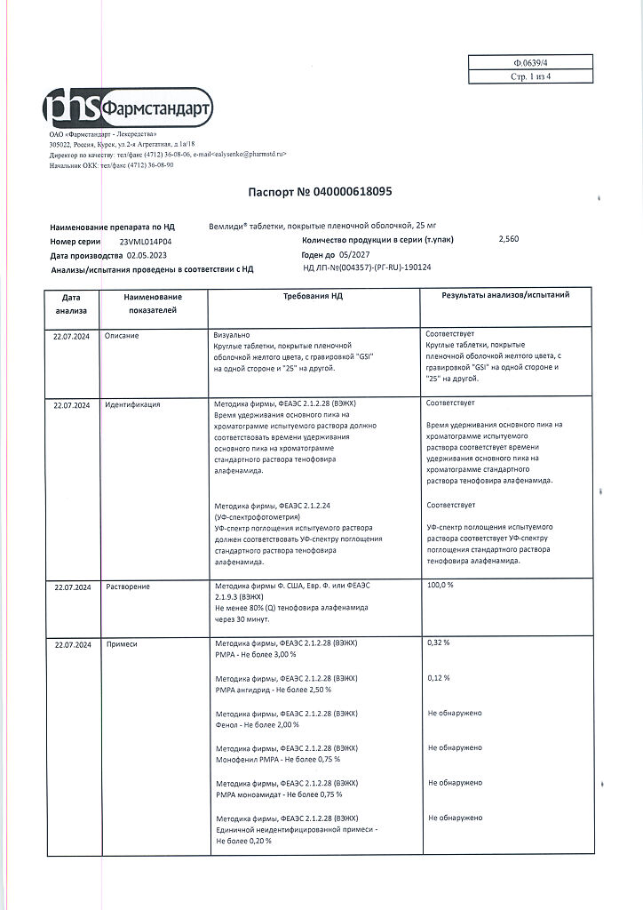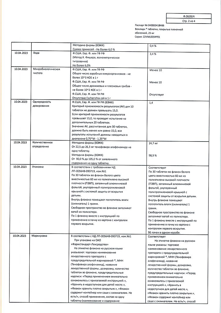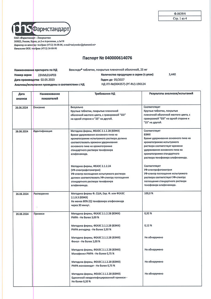 Противопоказано одновременное применение препарата Вемлиди® с лекарственными препаратами, содержащими тенофовира алафенамид, тенофовира дизопроксила фумарат или адефовира дипивоксил.